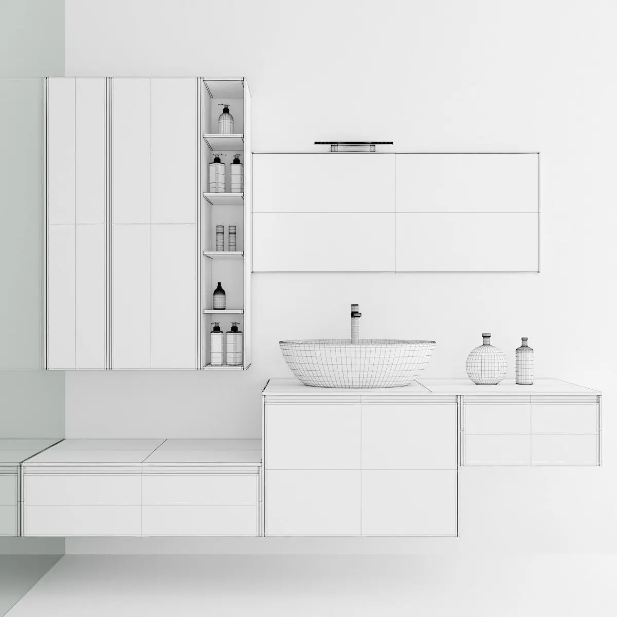 Bathroom furniture set Arcom Escape 3. Render : Vray, Corona Archives included: materials (mat) Corona, Vray, textures, fbx, obj, model 3ds Max 2014 Vray (3.4) and Corona (1.5)