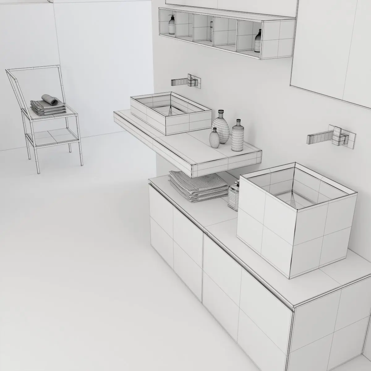 Bathroom furniture set La Fenice Render : Vray, Corona Archives included: materials (mat) Corona, Vray, textures, fbx, obj, models 3ds Max 2014 Vray (3.4) and Corona (1.5)Good renders for you!
