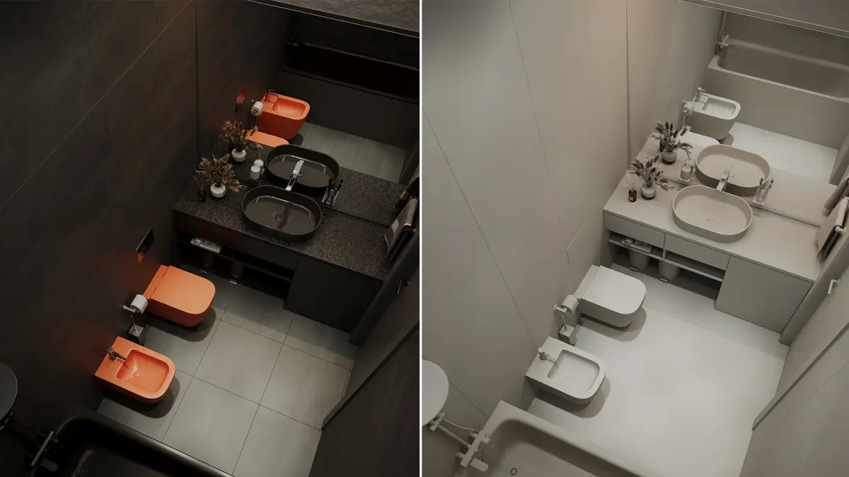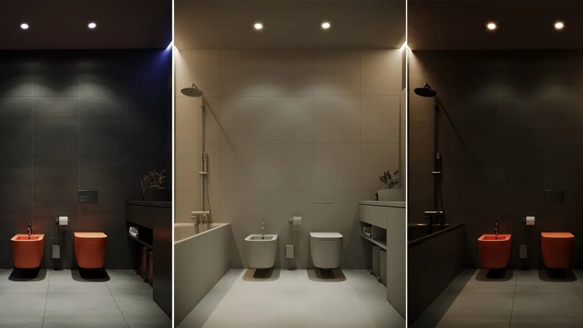 Interior of a bathroom. Created by its own design. All lighting and all materials are configured. Furniture in this interior to order. Elements of lighting, plumbing and tiles are modeled according to the originals. The visualization is done in the Corona renderer. Enjoy with pleasure)