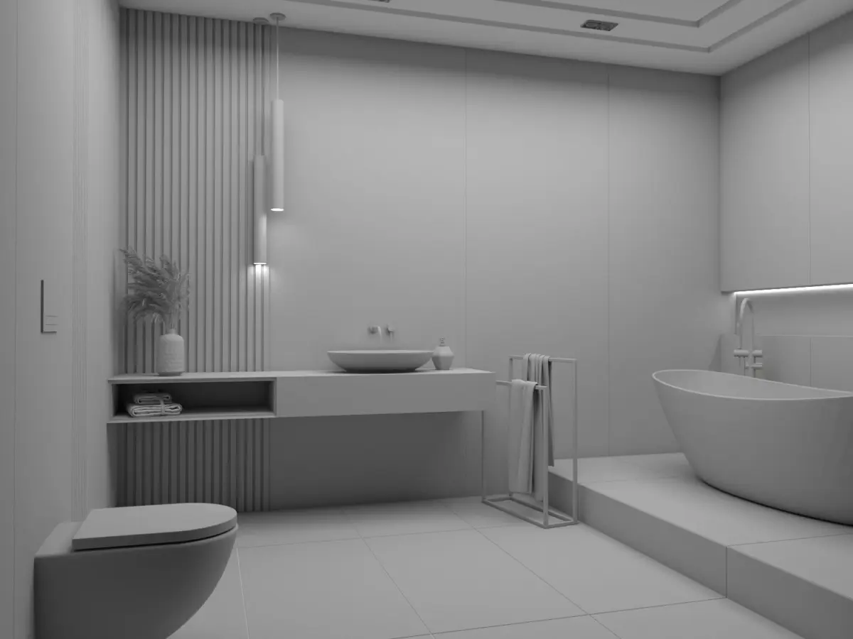 Bathroom interior modeled in SketchUp 2020.