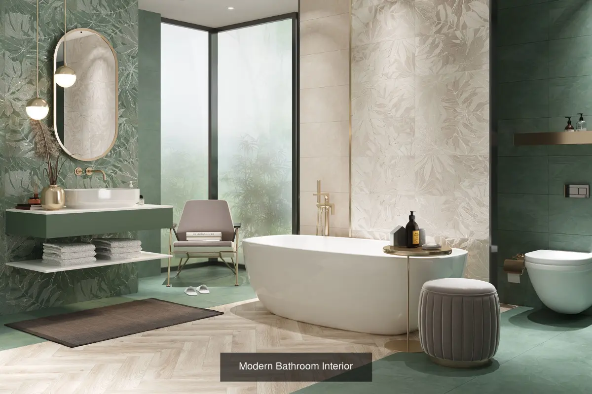 The scene is suitable for high-quality rendering, a great option for the presentation of ceramic tiles and bathroom fixtures. Easily customizable materials, colors, layout and lighting.