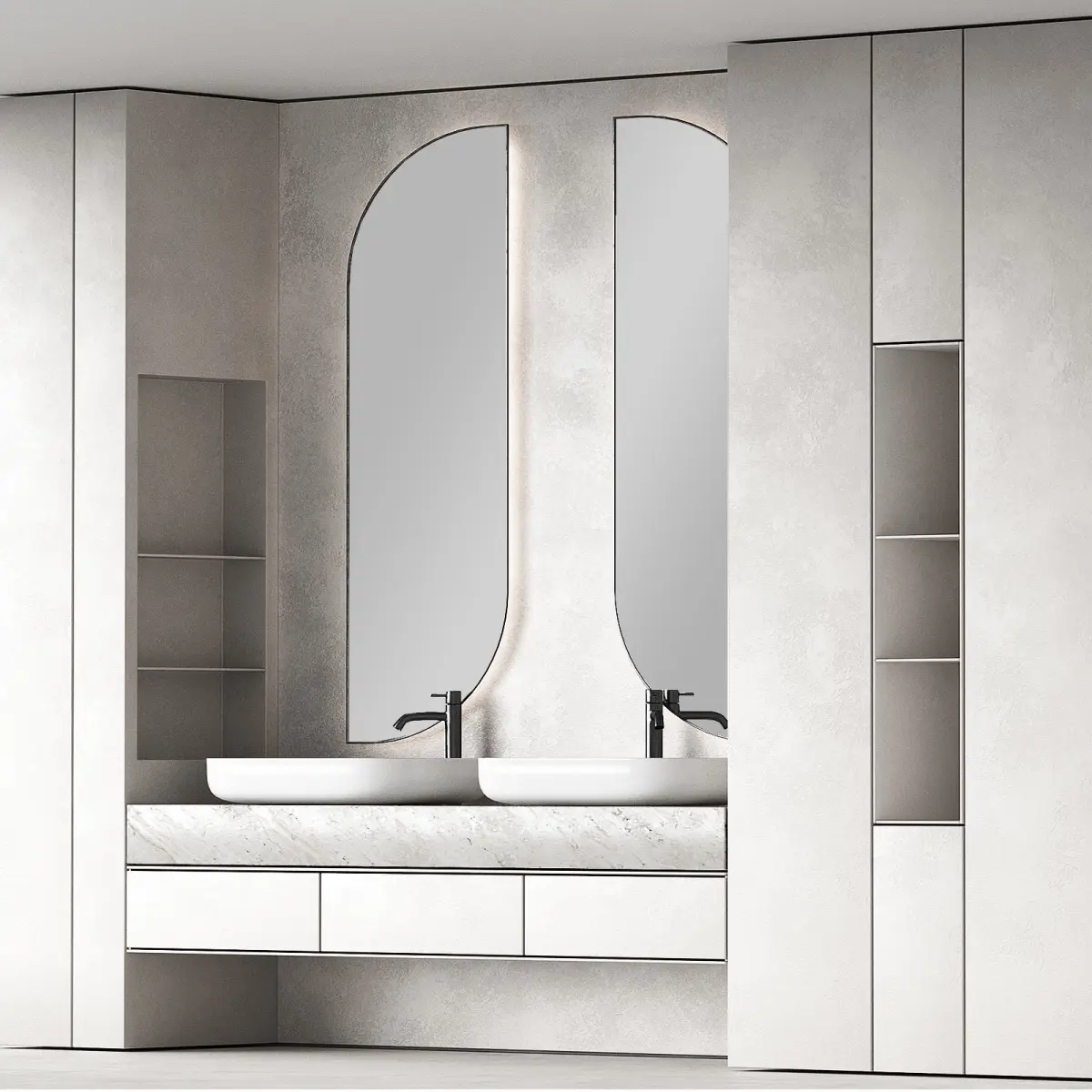 - semicircular semi-arched mirror with lighting
