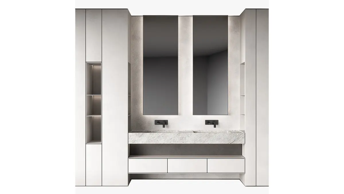 The 3D model contains a designer composition of bathroom furniture.In the set: