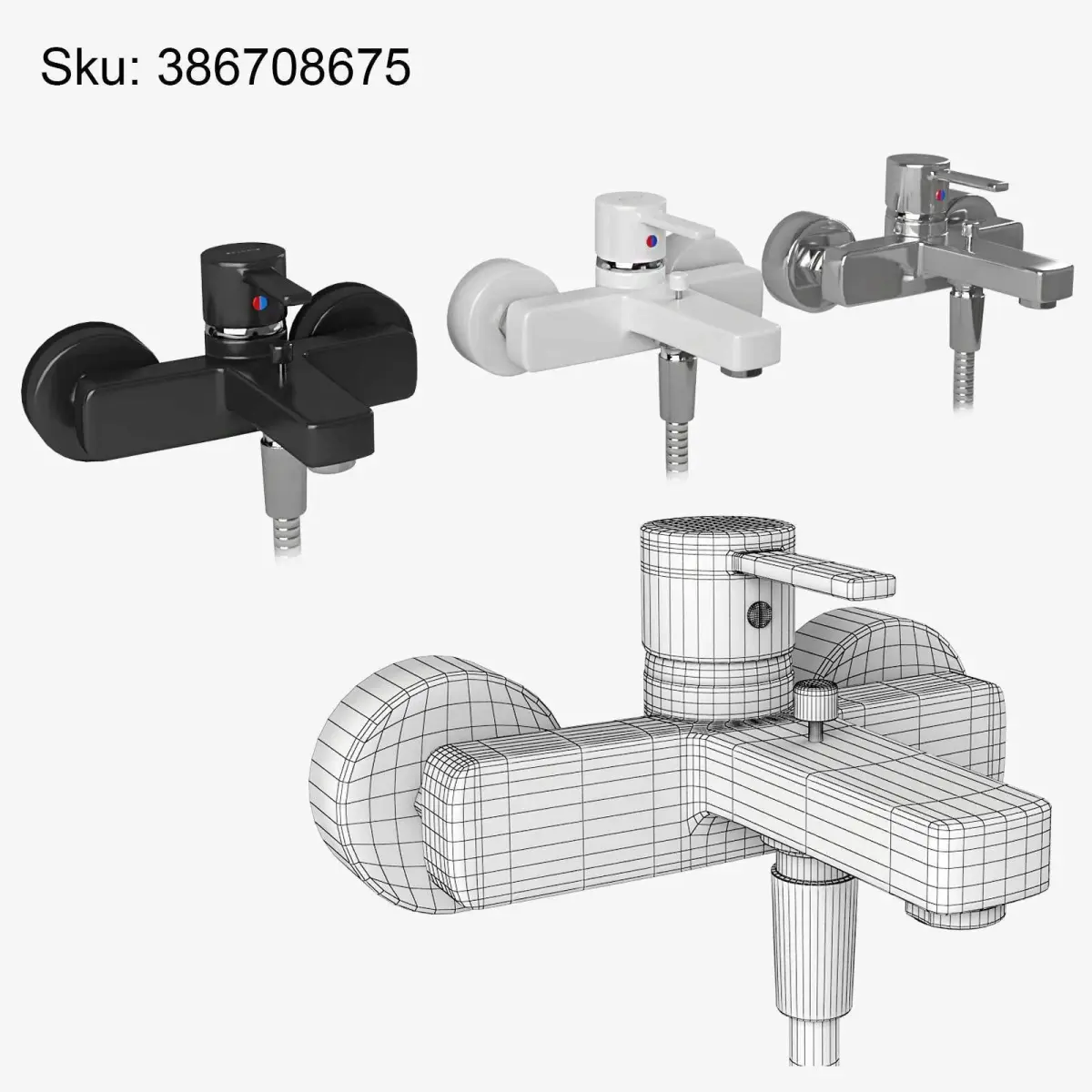 Realistic and detailed model of bathroom mixer set BLACK & WHITEin 3 modifications (black, white, chrome)