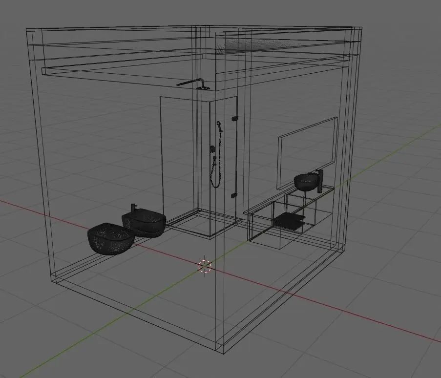 The model includes 3 walls, a ceiling, a floor and basic bathroom equipment, without materials.If you are looking for a similar model or need something else, please contact me. I can create a custom model.