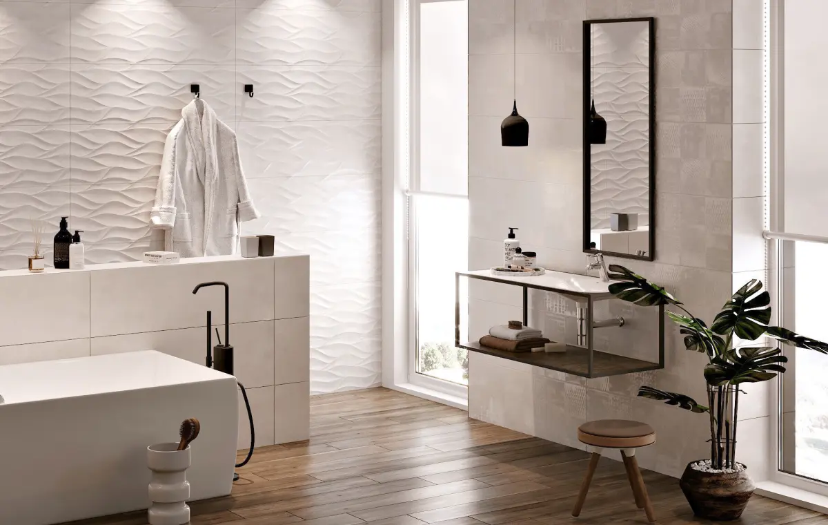 The stage is suitable for high-quality visualizations, a great option for the presentation of ceramic tiles, and accessories for the dignity unit. Easily customizable materials, colors, layout and lighting.