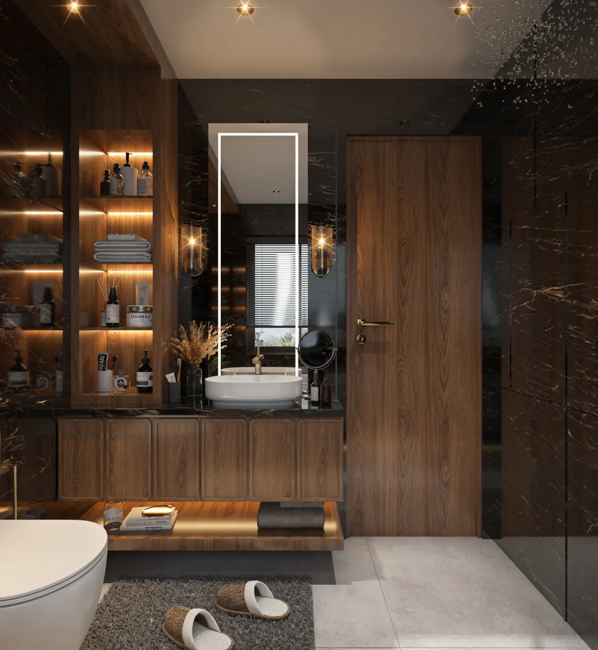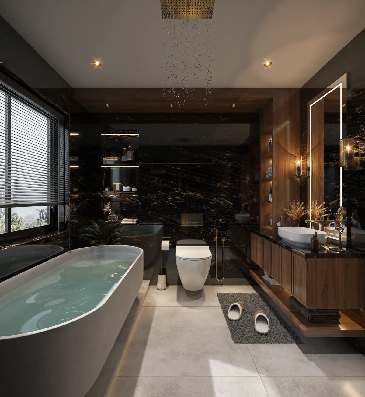 This bathroom looking like luxurious.bathroom tiles like a original and real maping.A luxury bathroom design should include the best bathroom features available. This bathroom is larger than most with a design goal to create a spa-like sanctuary where pampering happens every day.A true luxury bath design features a separate shower that is styled with exquisite finishing touches, such as fixtures and tile choices.