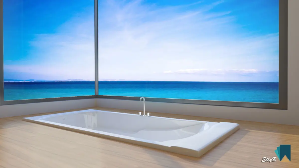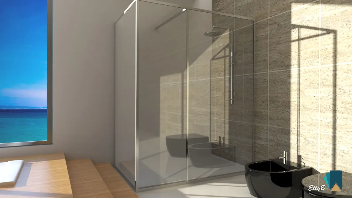 - This is a 3D model of a modern bathroom with a sea view, the scene is ready for rendering, all light, material and textures are correctly set and included.
