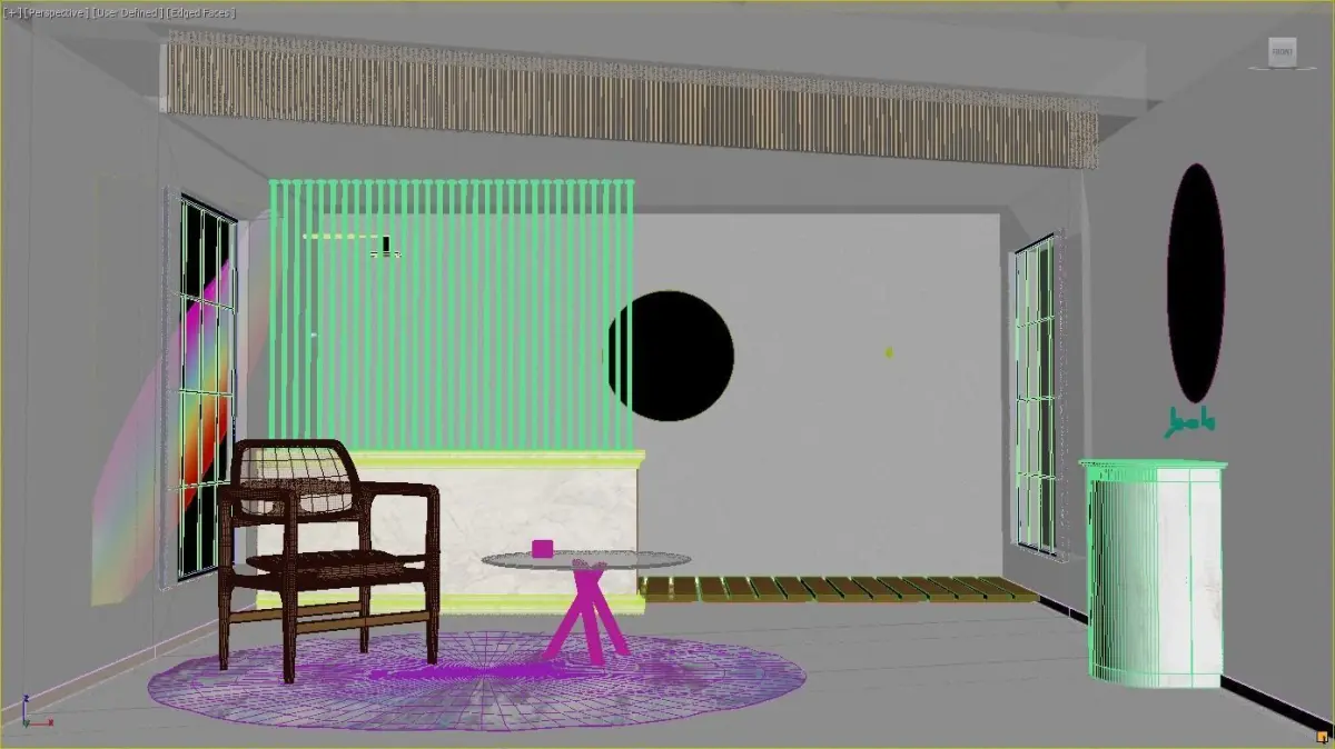 Wicked Oscar Chair model in the bathroom with a bath, sink, table, glass, and a carpet.Originally modeled in 3dsmax, rendered with Vray next and converted into a Cinema4d scene.Textures included, there exist uvw mapping on objects.