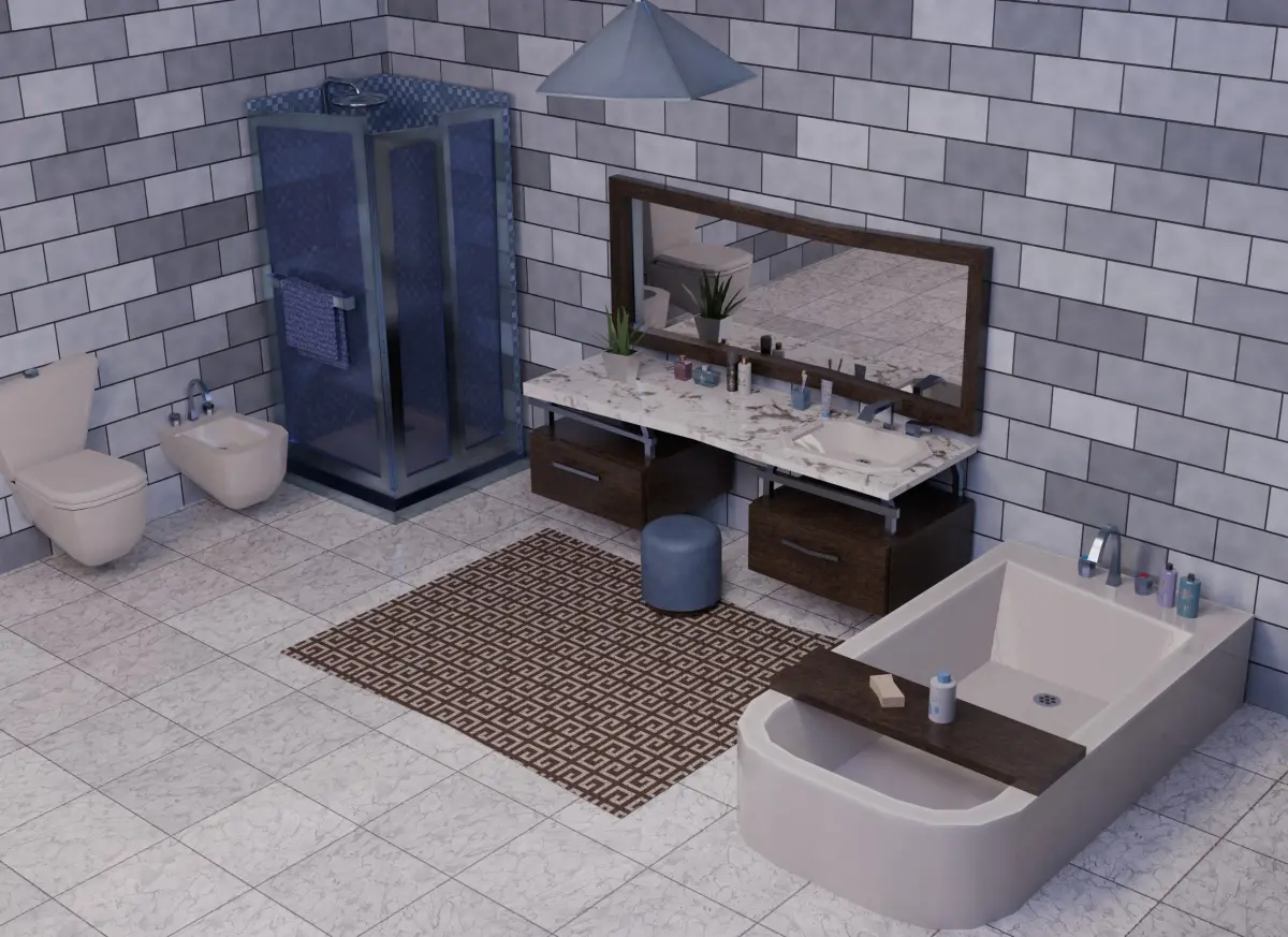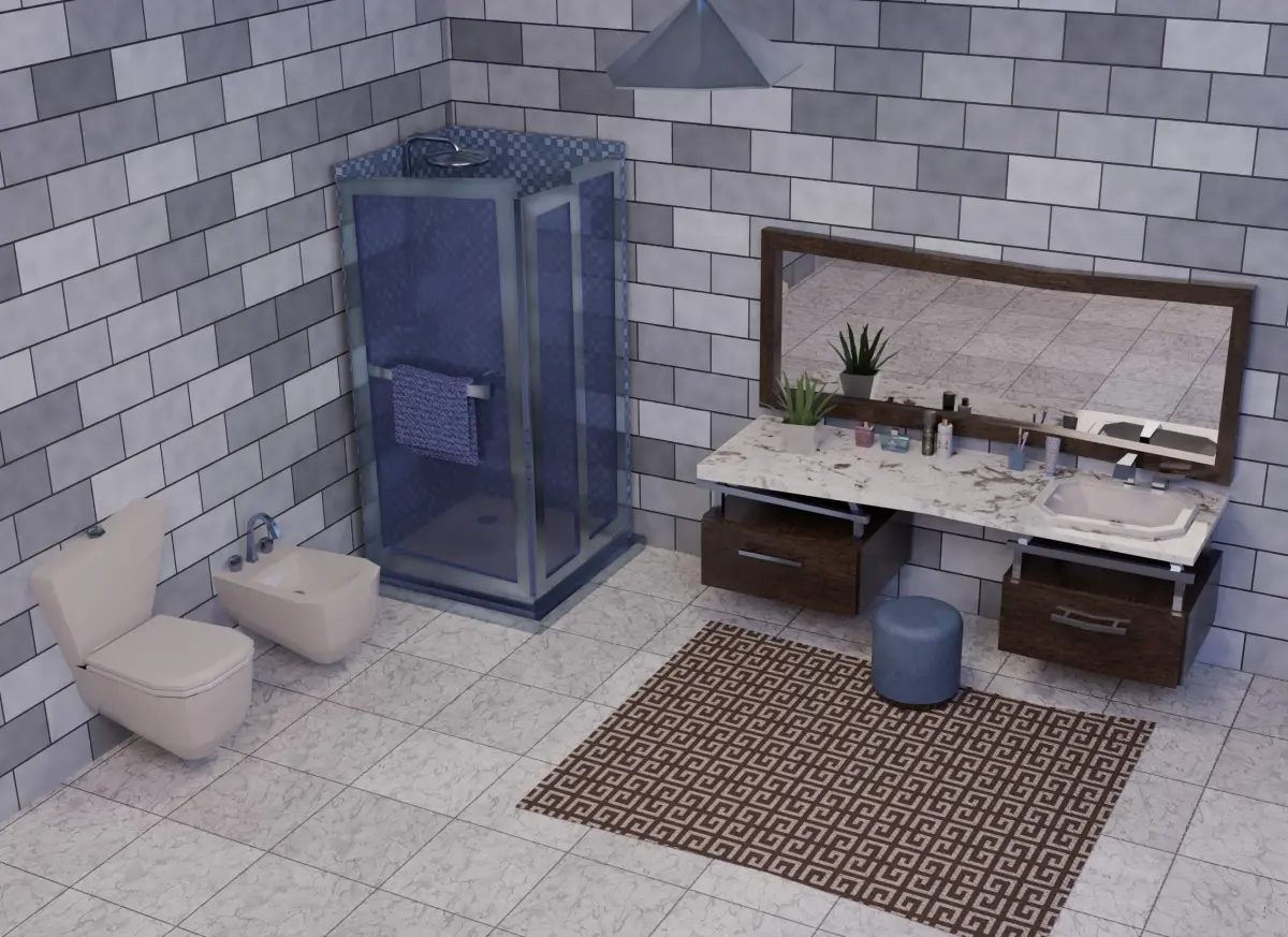 Pack of bathroom low poly furniture. 9 models with theyr own texture. Normals are open gl. The drawers, shower door and toilet seat can be opened.