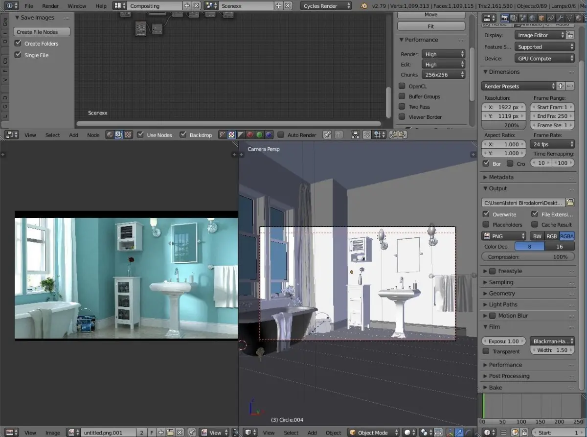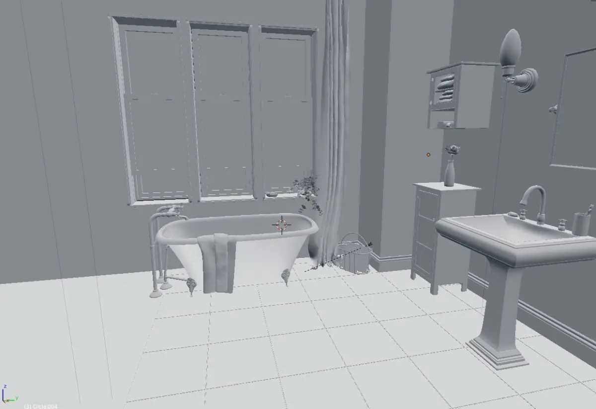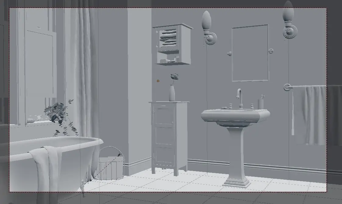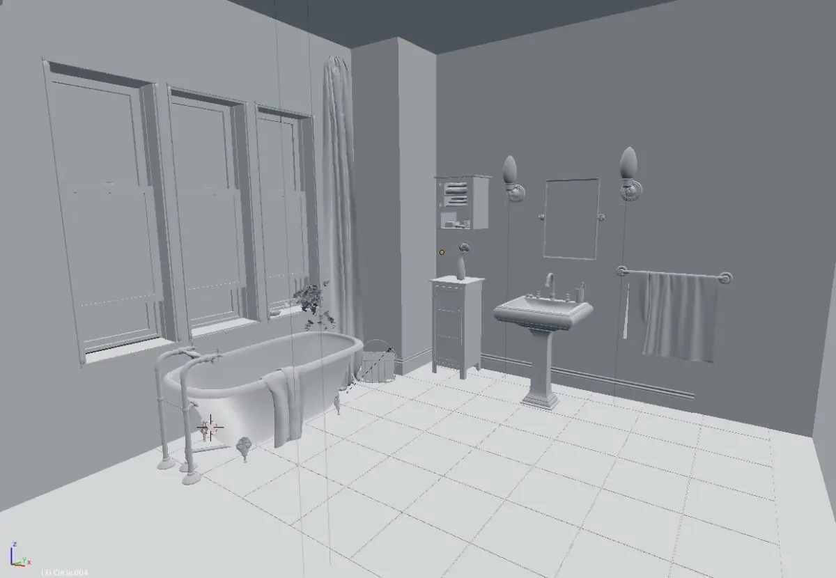 Detailed 3D model of a simple bathroom.