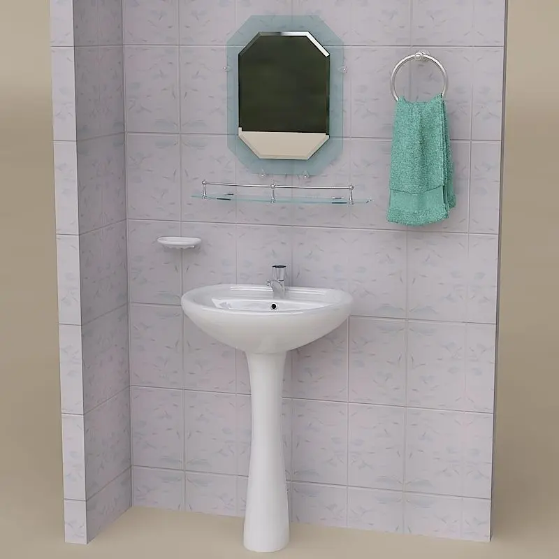 High Detailed Bathroom Pedestal Sink and Props with TurboSmooth modifier.The main format is 3ds max 9.0.max, also available in many formats.