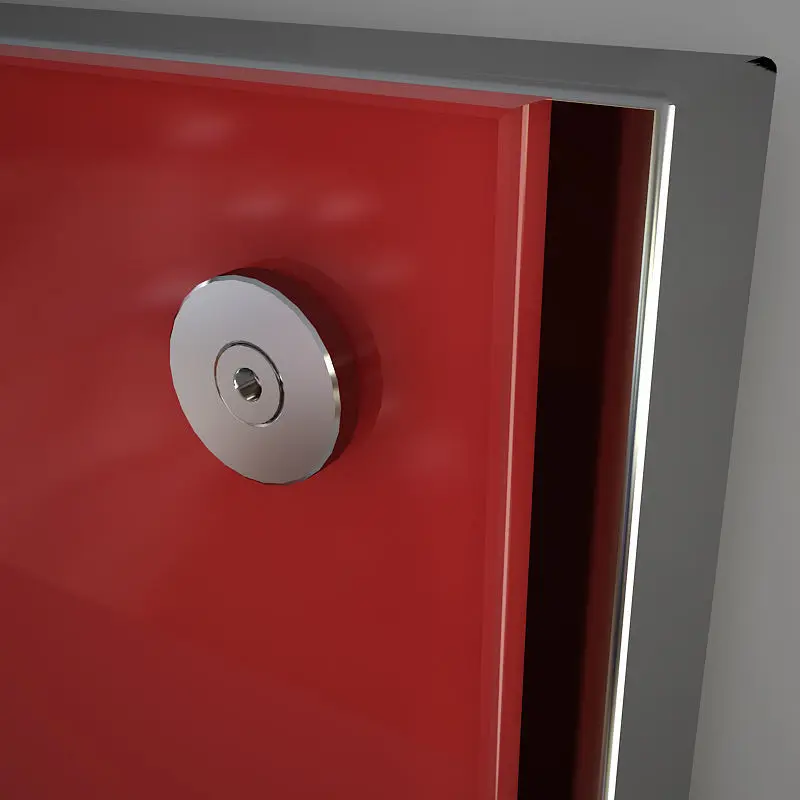 The front surface is a glass with red back surface (the color can be easily changed to fit your scene).The heater is behind it and is with a chrome material.