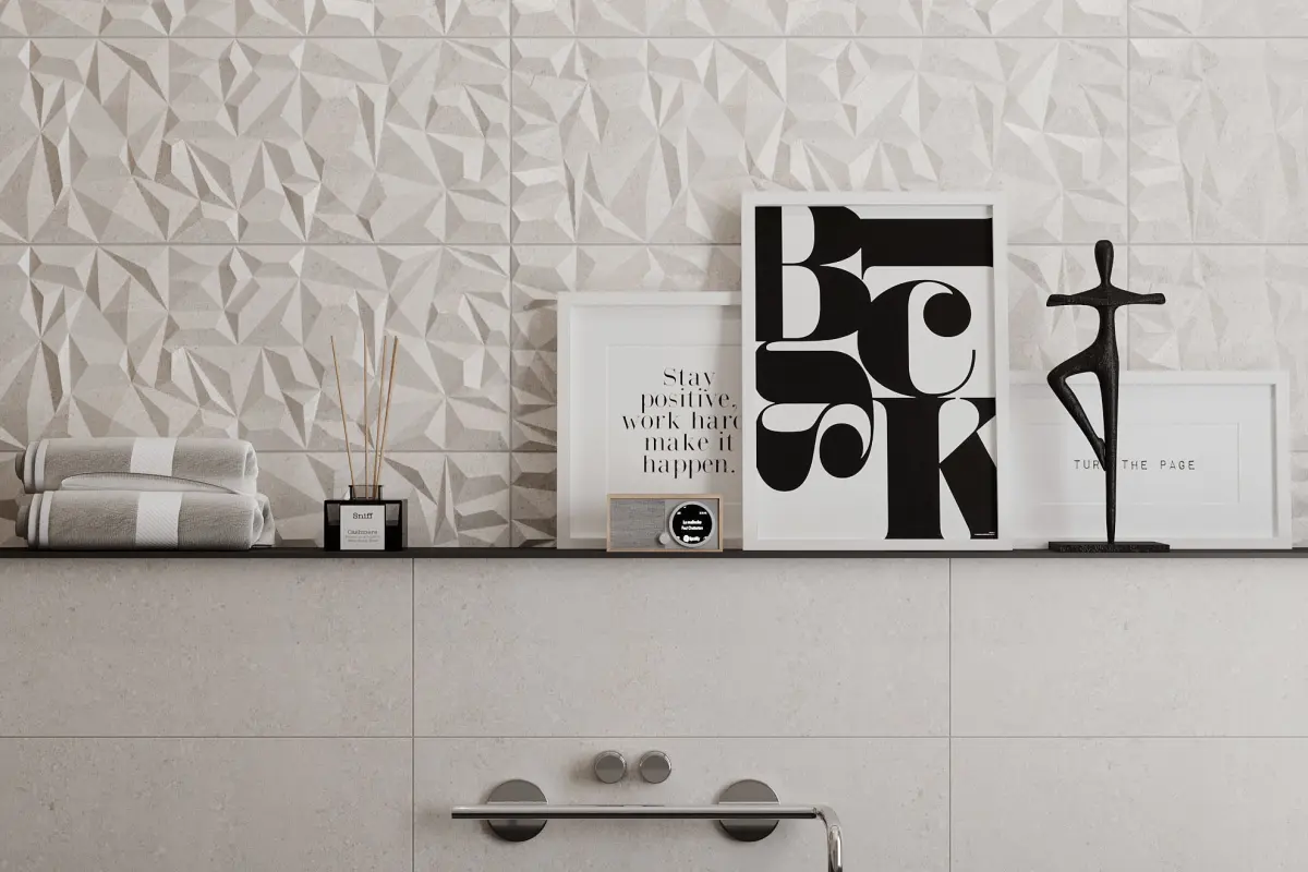 The stage is suitable for high-quality visualizations, a great option for the presentation of ceramic tiles, and accessories for the dignity unit. Easily customizable materials, colors, layout and lighting.