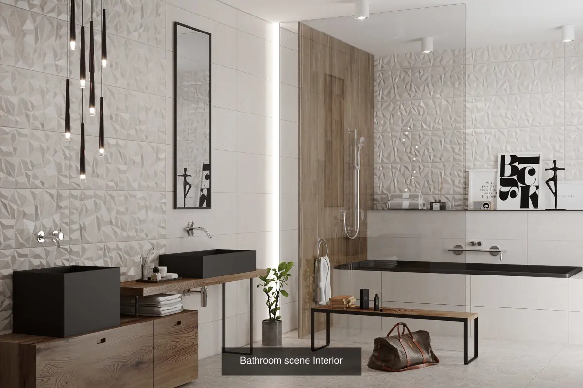 This collection includes detailed 3D bathroom scenes created for professional product visualization in interior spaces. Models are provided in 3ds Max 2022 format using the Corona render engine. Floor Generator and Multitexture plugins are used for flooring and textures. This collection is perfect for showcasing bathroom fixtures, furniture, and accessories in realistic interior settings.