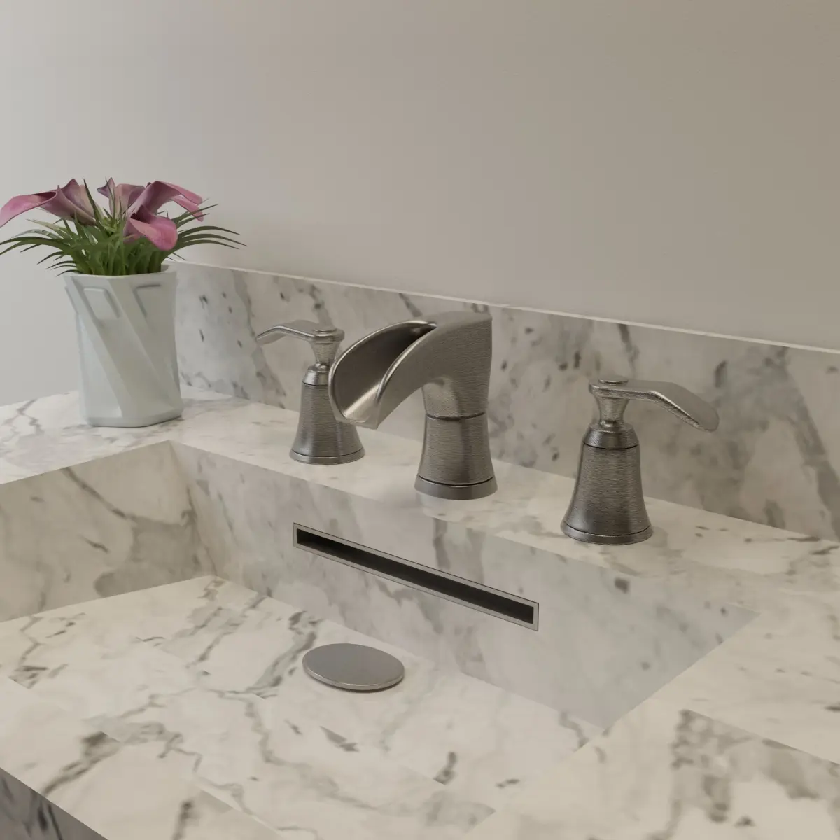 Sleek Modern Design: This sink and faucet set has a contemporary, minimalist design, combining smooth, clean lines with finely textured details for a sophisticated finish.