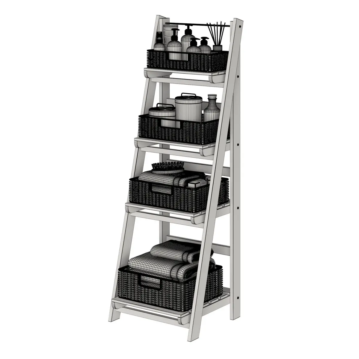 Rack with shelves for cosmetics in the bathroom
