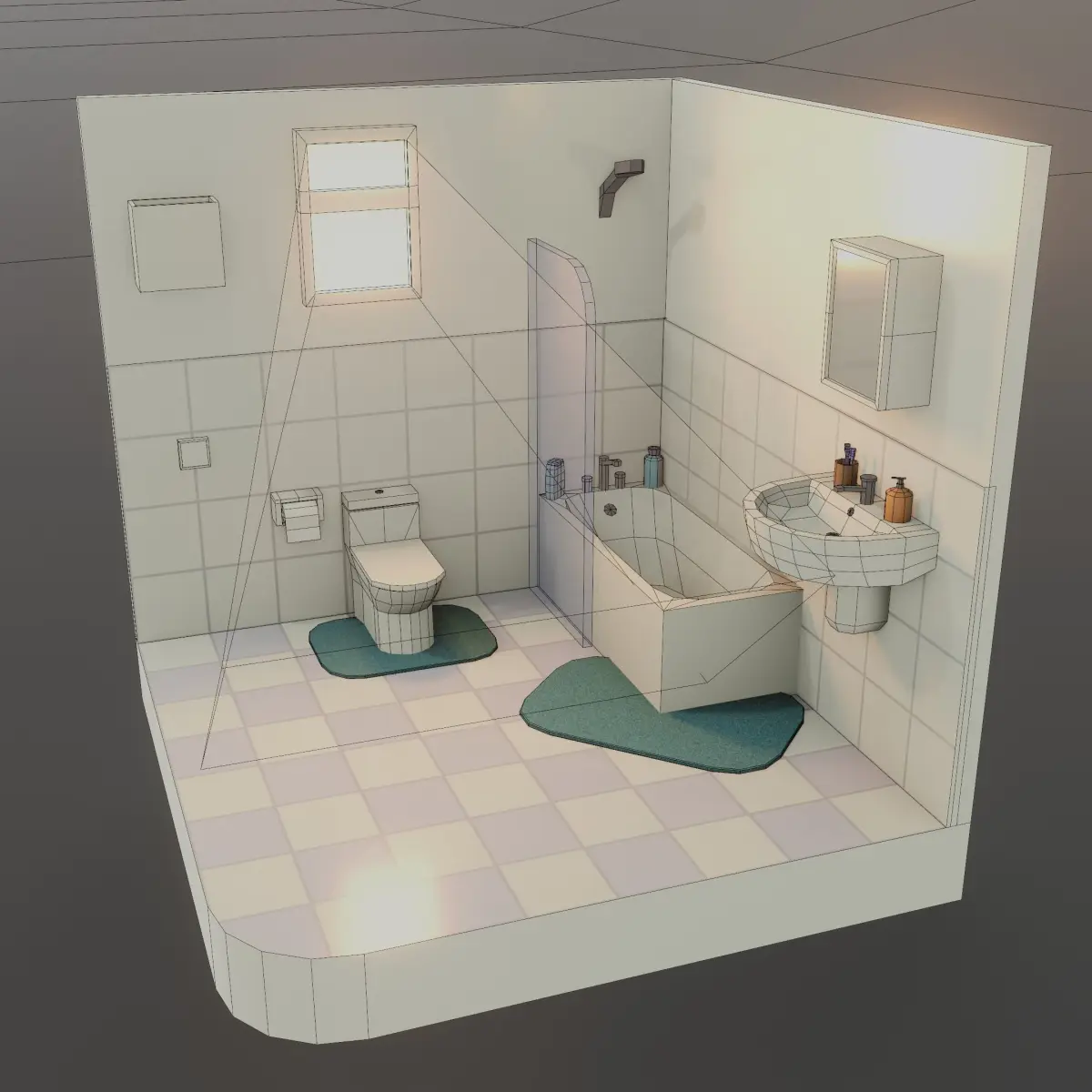 - + Small props (shower gels, etc, toothbrush, etc)