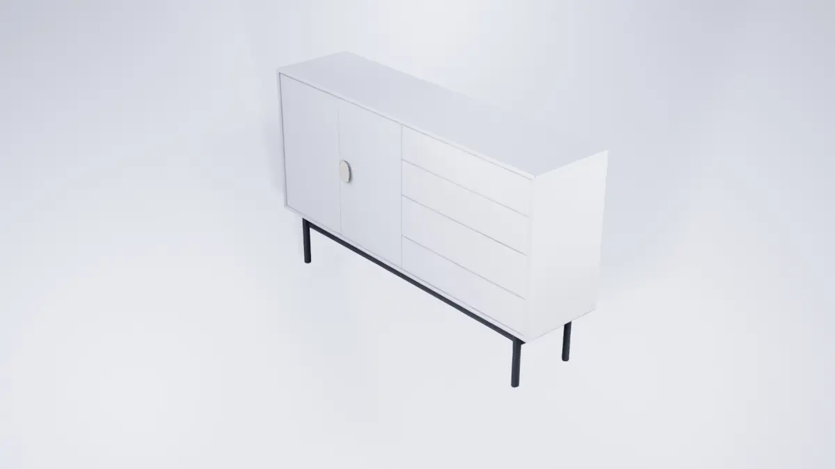 A stylized low‑poly vanity cabinet with a sink cutout and two access doors. Designed as a static model under a royalty‑free license.