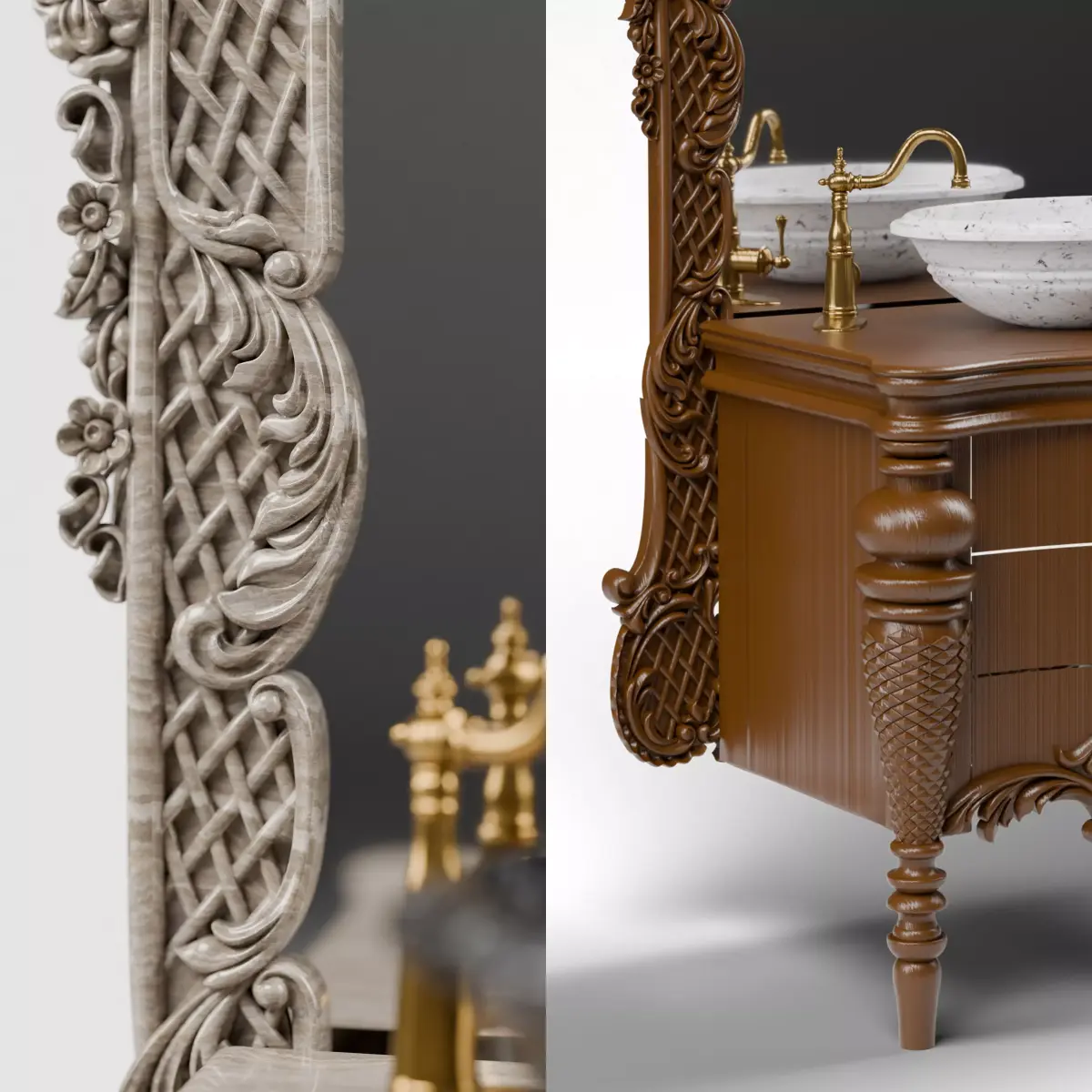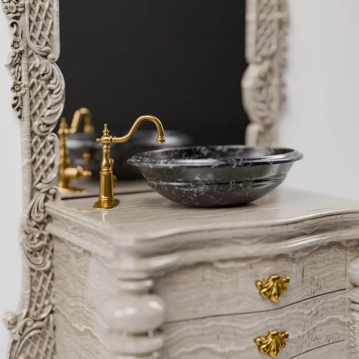 This Bathroom Vanity With Mirror is designed in an elegant neoclassical style, combining timeless proportions with refined decorative details. The design features balanced symmetry, subtle moldings, and soft classical elements that create a luxurious yet sophisticated presence in any bathroom interior.