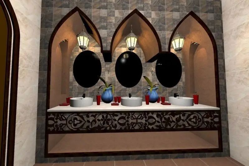 3D Design Bath Room & Wash Room Walls - Spanish ceramic tiles, with wooden cluster Flooring - Spanish ceramic tiles Ceiling - Flat CeilingFile is Created by Autodesk 3ds max 2013 and Assign Renderer v-ray version 2zipped folder contains 3d max file for wash room & 3d max file wc and all images which use in maps