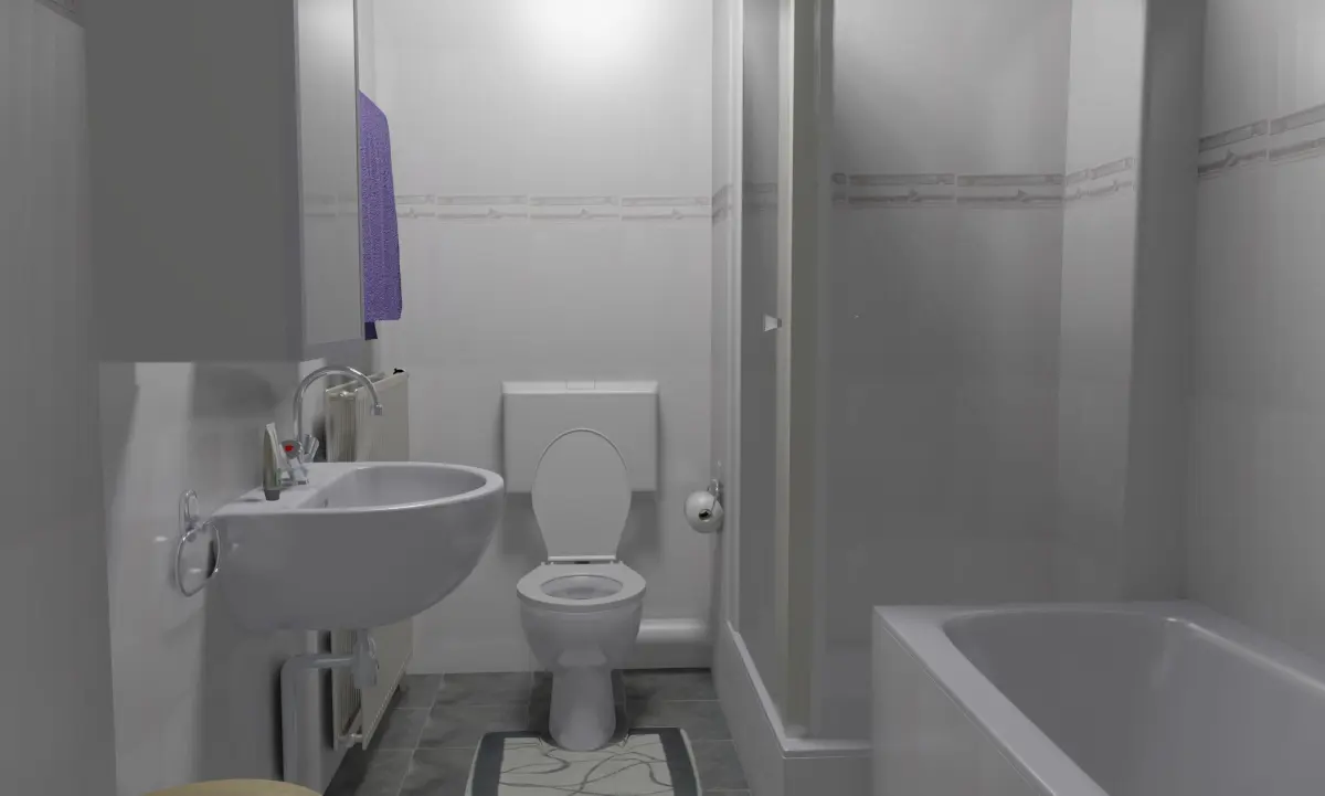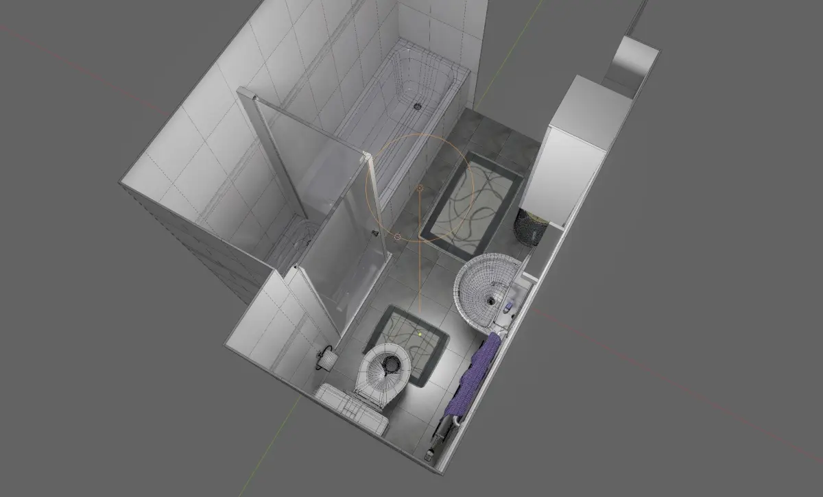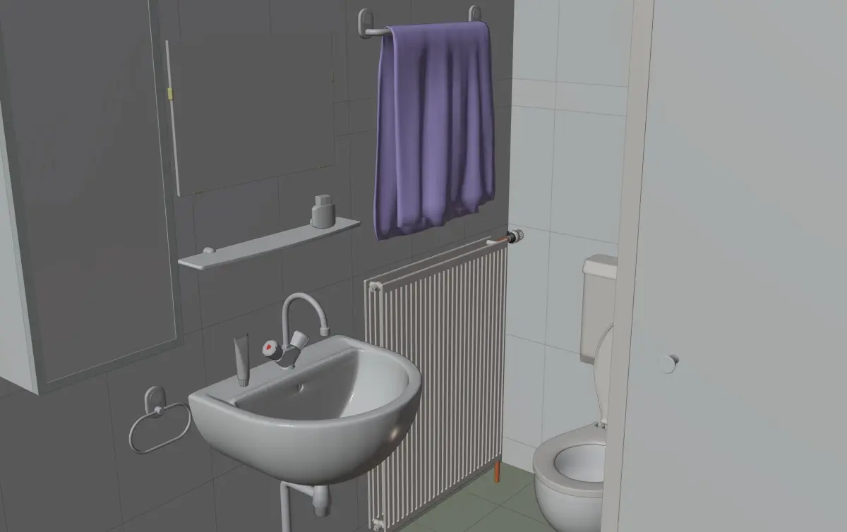 Bathroom. Configured in native .blend for Eevee (realtime); also works in Cycles. ~124k verts / ~124k faces. Includes .blend / obj / fbx / dae.