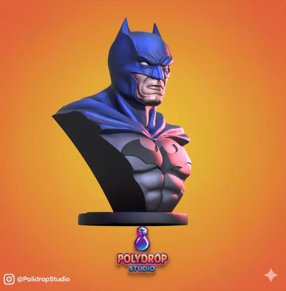 Batman is a human vigilante without superpowers, distinguished by his sharp intellect, combat training, and personal fortune, which he uses to develop advanced technology to fight crime. His secret identity is billionaire philanthropist Bruce Wayne, who vowed to avenge the murder of his parents. He is a master detective and strategist, with a great ability to plan and anticipate criminals. He is a master of virtually all martial arts and has great physical endurance thanks to his disciplined training. I hope you like it. If you love miniatures or enjoy painting, this bust is the perfect addition to your collection. More characters will be coming soon.If you like my work, remember that you can follow me on Instagram at @Gaston.Hoz and @polidropstudios.