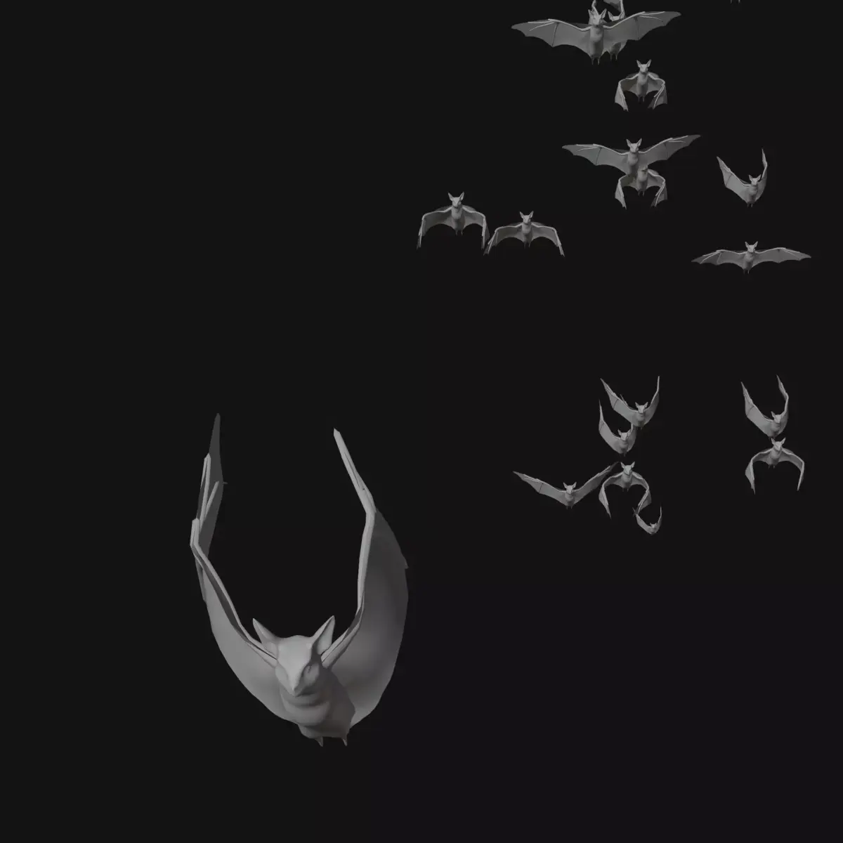 Bats swarm low-poly looping 3D animation.