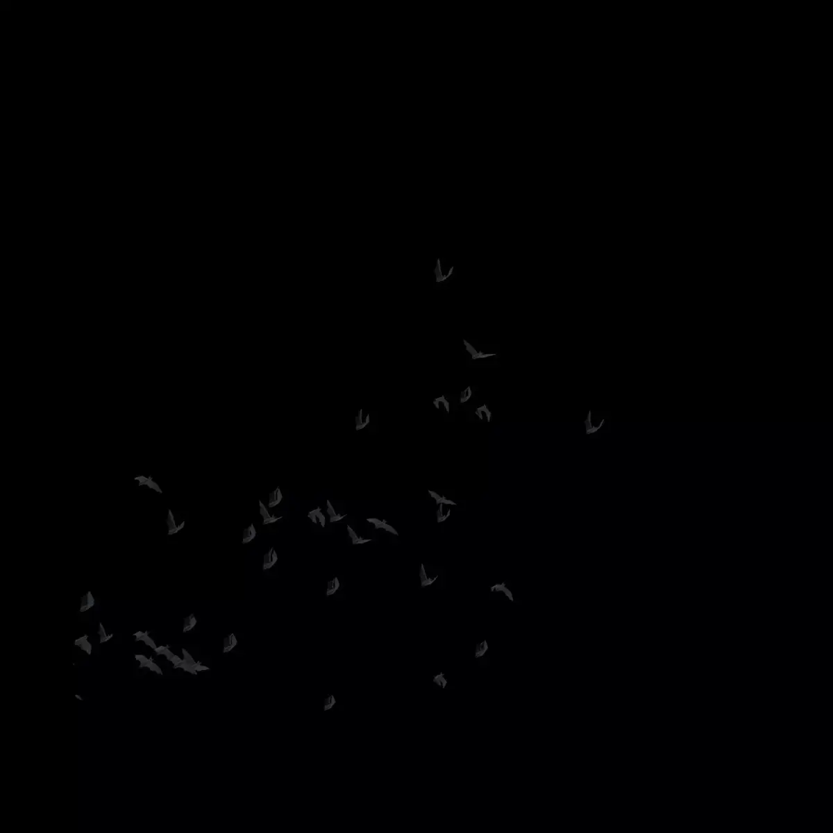 Spooky swarm of bats flying animation — perfect for Halloween scenes, dark fantasy worlds, and horror environments.