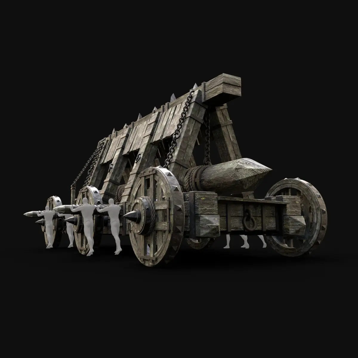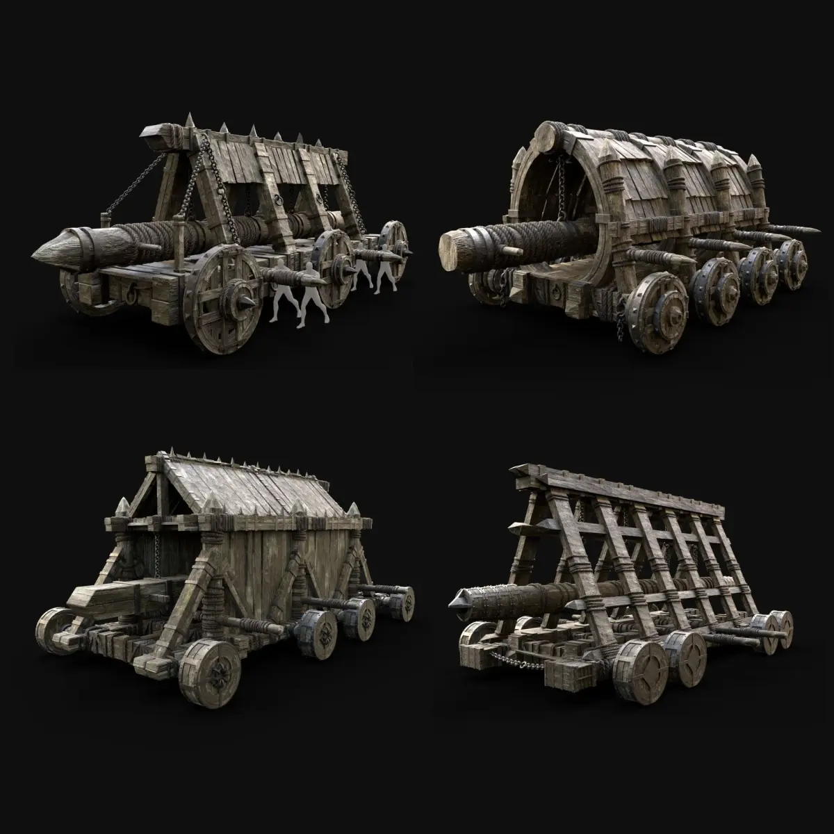 - Next gen, AAA quality, 4 game-ready models of medieval war battering ram siege engine.