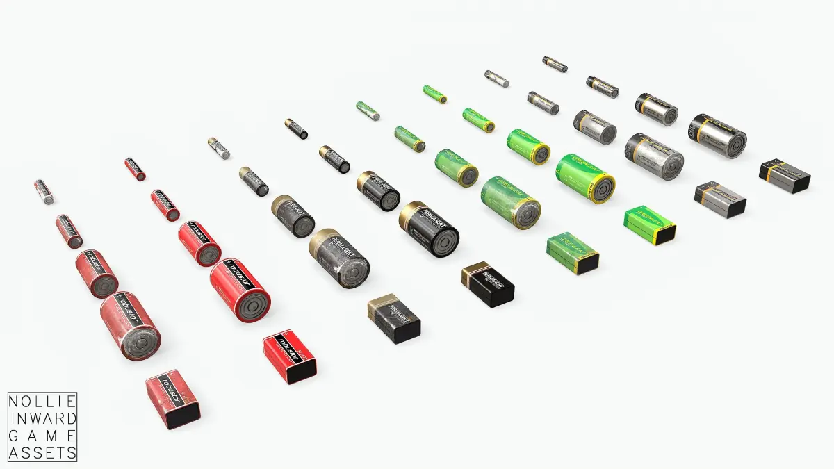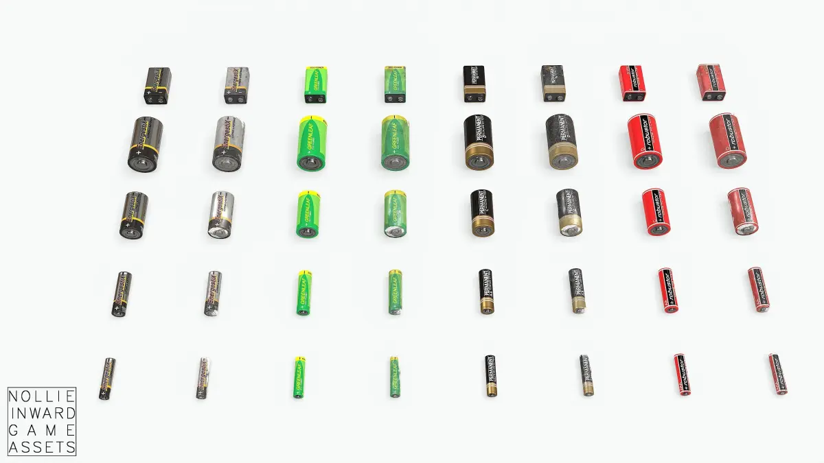 AAA, AA, C, D and 9V Batteries in Clean and Old variants.