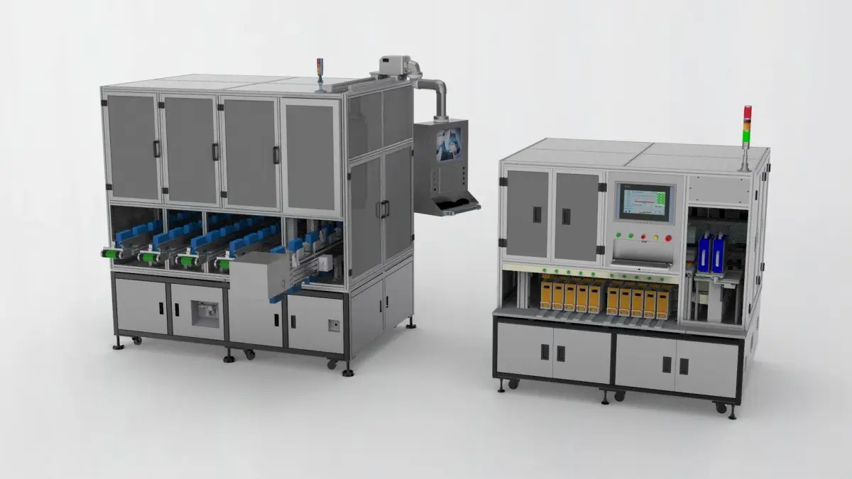 Purpose of this kind of equipment: the sorting of new energy batteries, the purpose is to divide the batteries of different power ranges into different stalls, according to the performance of the combination, to achieve the improvement of the comprehensive performance of industrial batteries. One is round battery sorting and the other is square battery sorting. Clever mechanism, including manipulator, vacuum sucker, sorting mechanism and so on, is a good reference model for designers.
