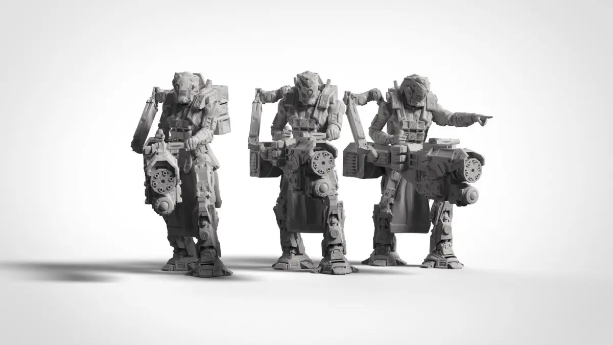 The Koloss battle armor has recently appeared on the battlefield. It is unknown if they are man, machine, or both. This download contains .STL and .OBJ files for the following models*: