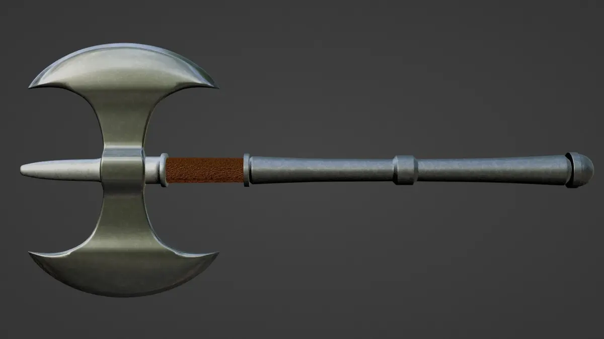 This model was created in a way to make it look like a real Labrys. Preview images were rendered with Blender Eevee.