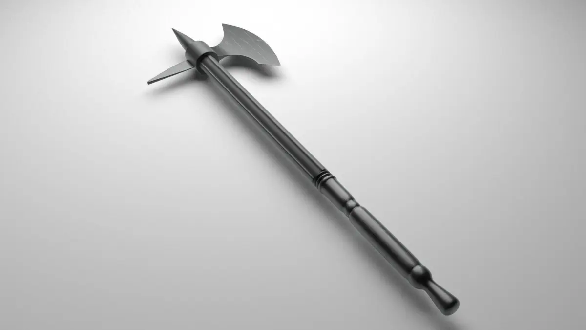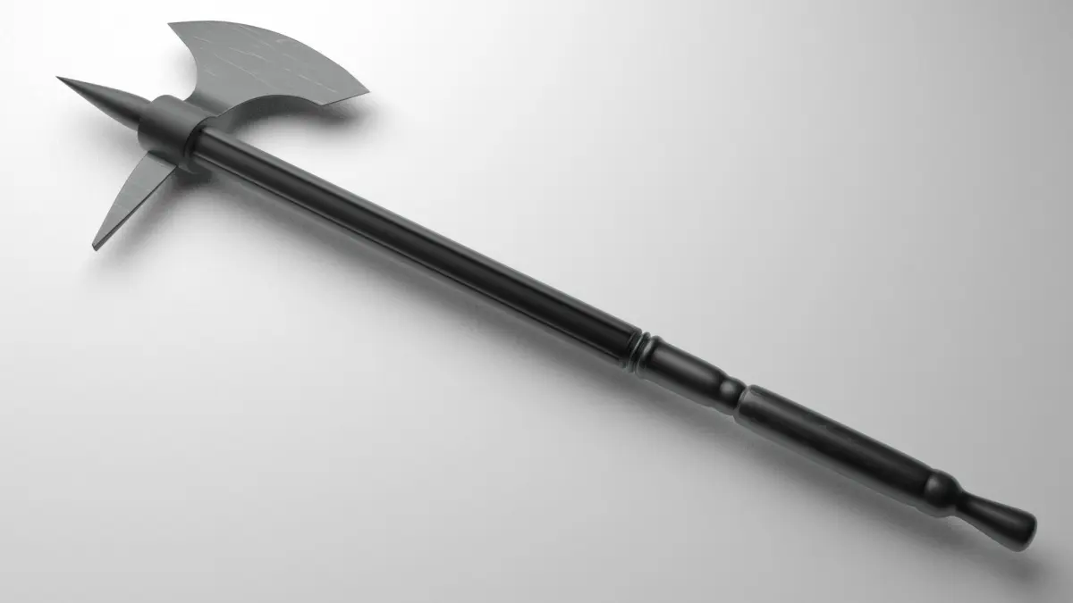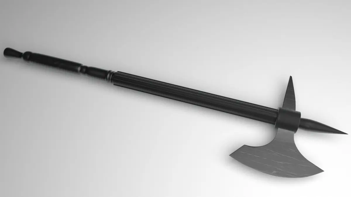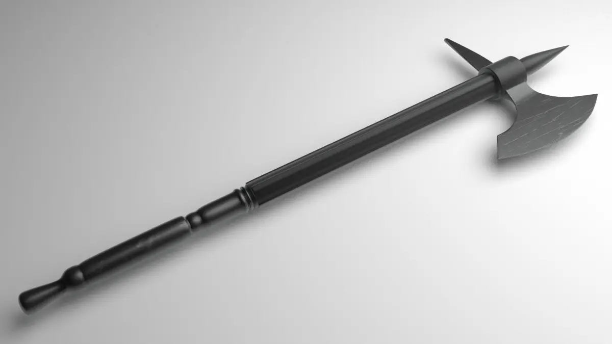 PRODUCT DETAILS-BATTLE AXE External textures are employed Baked colour, specular, occlusion and normal maps are available for .obj .3ds .fbx formats. Normal map is baked from a high resolution model UV unwrapped for further texturing if desired Poly count of 3,230 vertices, 3,218 faces and 6,436 triangles PBR node used for blade. Blender model comes pre-lit with a backdrop and light source. Model isn’t drawn to real world scale.