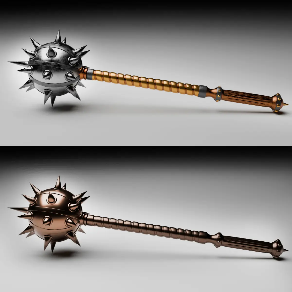 Mace high-poly model created in Blender 4.1. A set of textures and materials is available in the archive. File formats FBX, Blender, obj,stl are added. There is also a file in STL format for 3D printing and milling on a CNC machine.