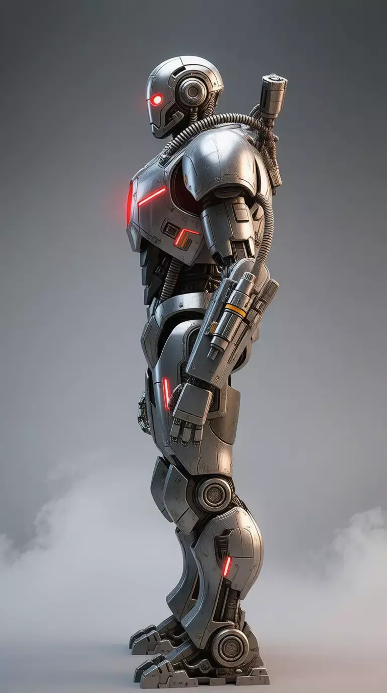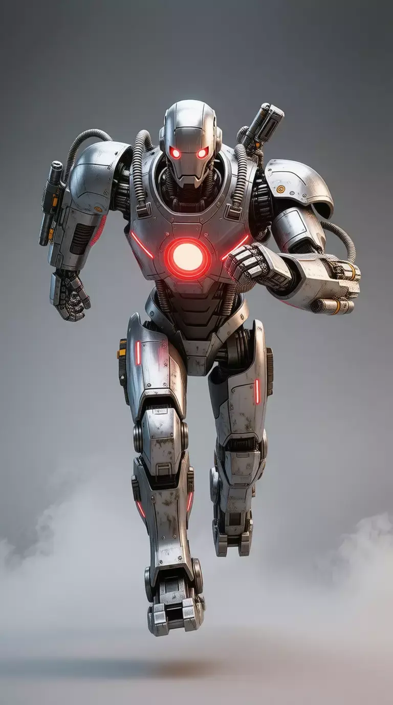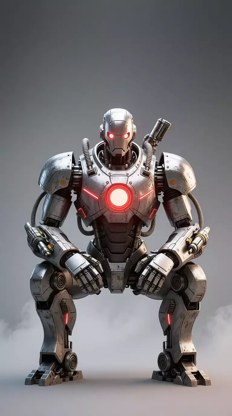 Search terms: battle mech robot 3d, sci-fi war machine, red glowing core, high end character render, editorial sci-fi 3d, cinematic robot, premium 3d asset, game design, symbol of power robot, luxury brand content, digital fashion, tech product shot, robotic motif jewelry, elegant mech 3d, sculptural robot, advanced technology, powerful accessory, cinematic design, fantasy architecture, exotic design.