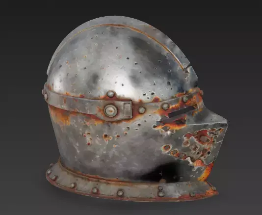 The Overall Concept This asset is a hyper-realistic archaeological find. It depicts a classic medieval knight's helmet (resembling a close helm) that has been lost to time, making it perfect for a dungeon environment, a museum display, or a Souls-like dark fantasy setting.