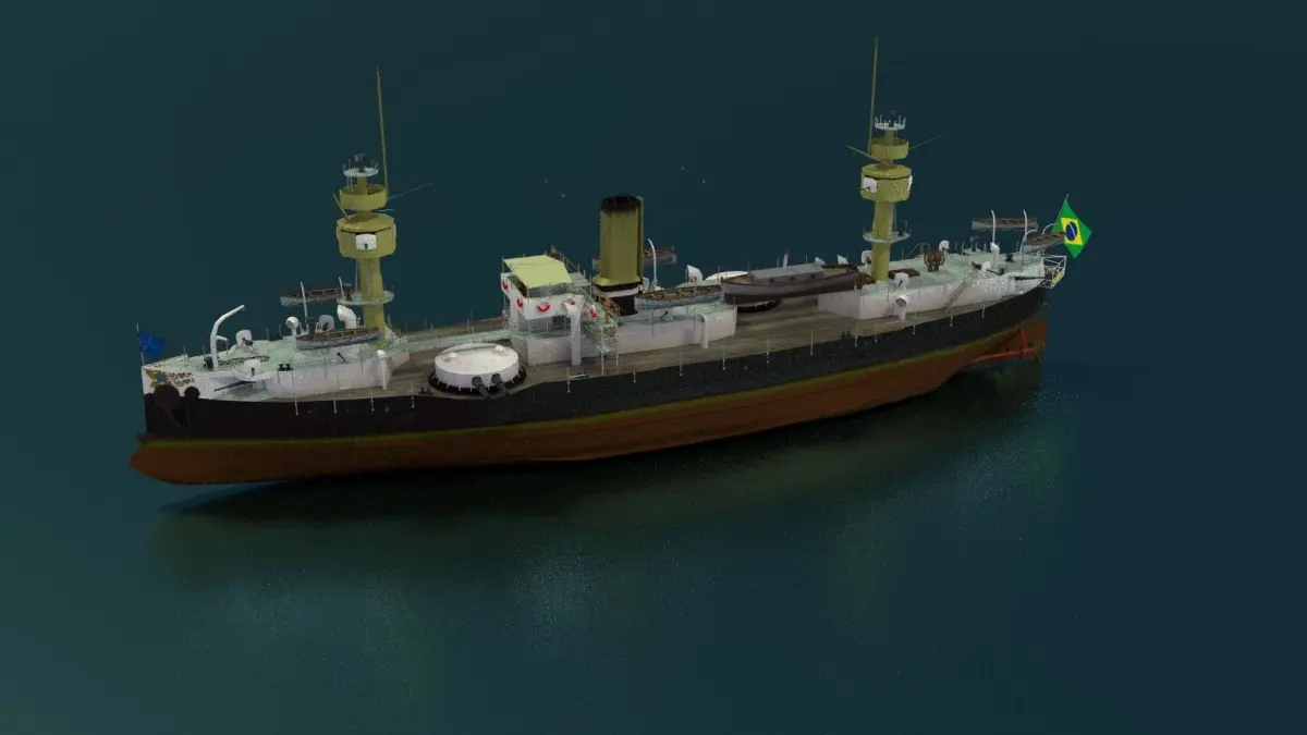 Note: The .blend files and its textures are in the Battleship Aquidaba_blend.zip file. Attention, if the 'Battleship Aquidaba.blend' file and the texture folder are unzipped in the same folder, the textures will be automatically added to the template when it is opened in Blender.
