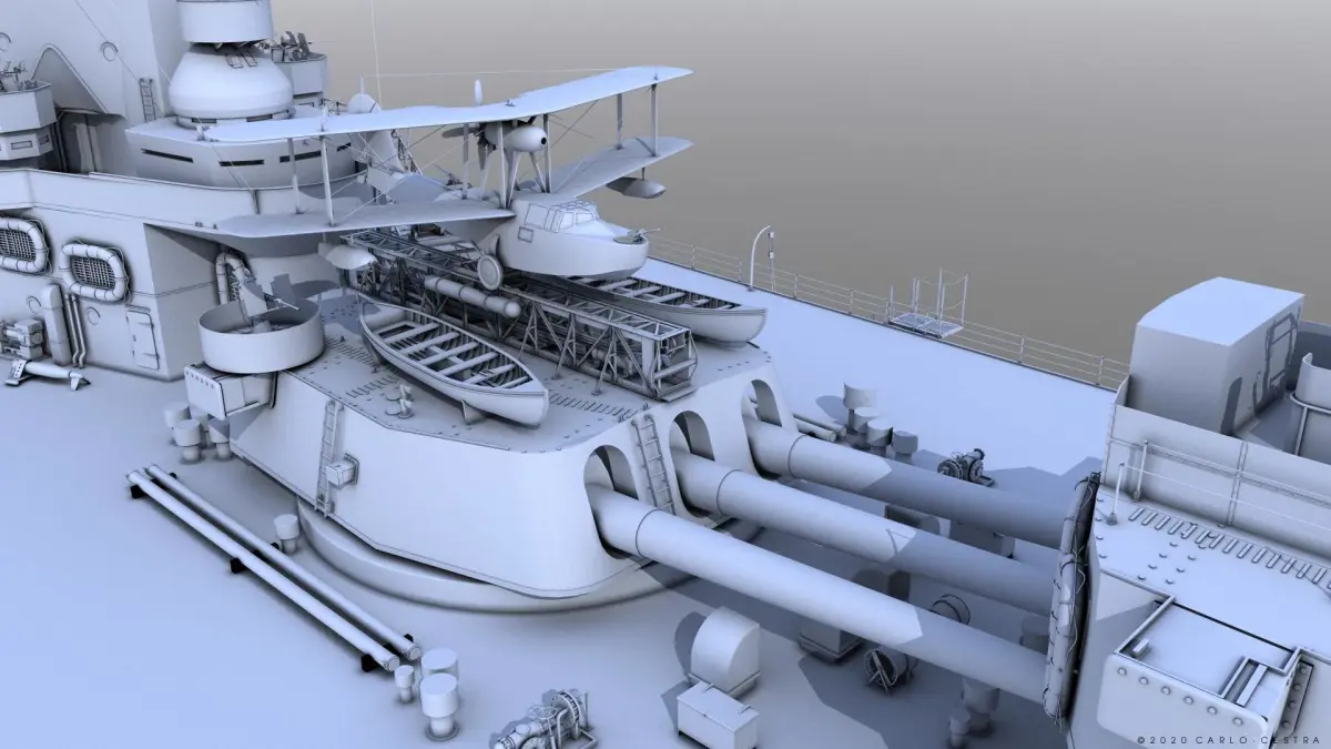 GENERAL INFO The model was created based on blueprints, photos and historical documentation. It was created with precision in detail and in real units of measurement to be a faithful digital reproduction of the original. It was modeled with Lightwave. The model includes all the cannons, all the anti aircraft guns, all the motorboats, lifeboats and the Supermarine Walrus floatplane on board. The objects are separated into 168 clearly named layers, to help you to import them into your 3d software.