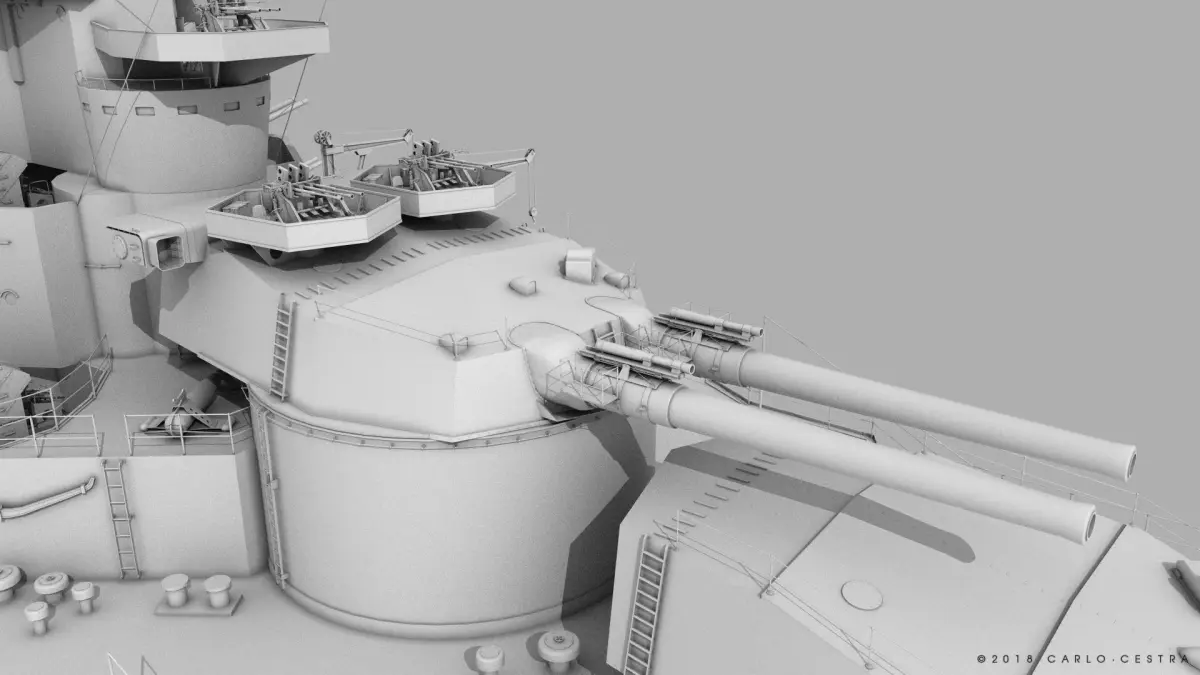 GENERAL INFO The model was created based on blueprints, photos and historical documentation. It was created with precision in detail and in real units of measurement to be a faithful digital reproduction of the original. It was modeled with Lightwave. This model has no materials and no textures. Geometry only. The model includes all the cannons, all the anti aircraft guns and all the motorboats and lifeboats on board. The object is separated into clearly named layers, to help you to import it into your 3d software.