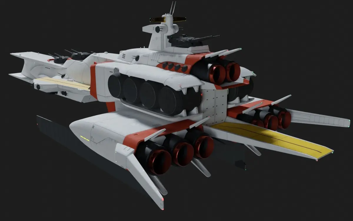 Ra-cailum class battleship in the flagship of Earth Federation Force in Gundam Char's Counterattack.This model is weathering style in 1:1 scale (m). I create some handle curve for the moveable part (such as main cannon and gate).