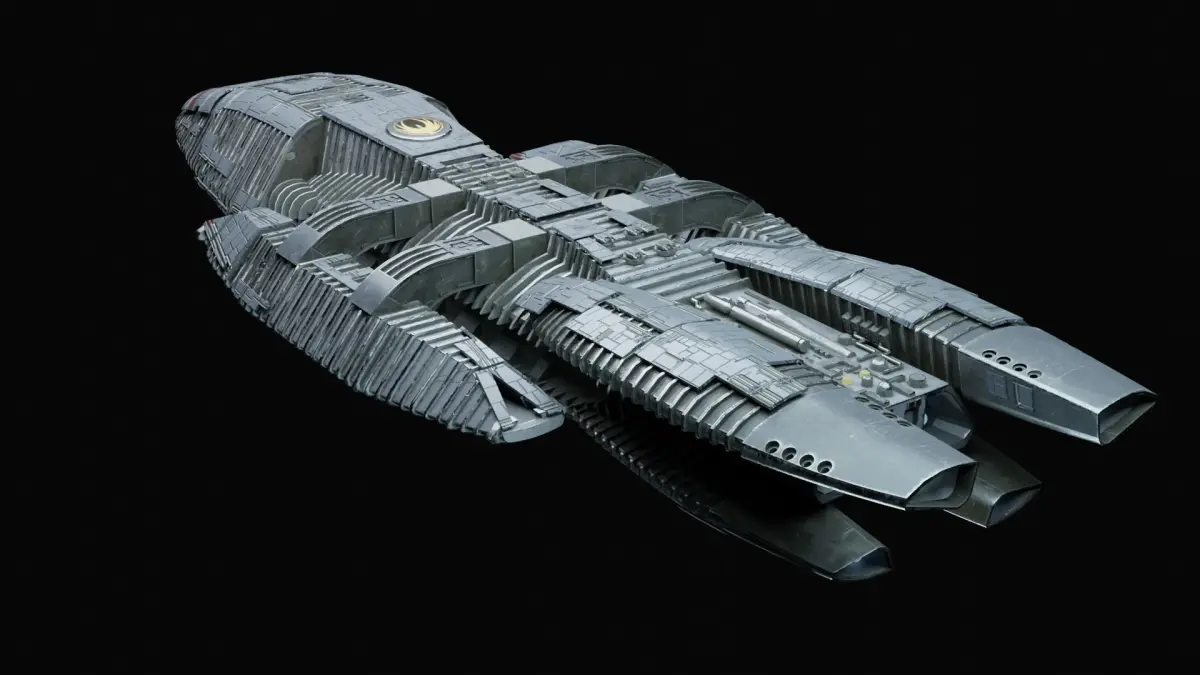 The spaceship 3D model of in Battlestar Galactica TV series with 4K textures.