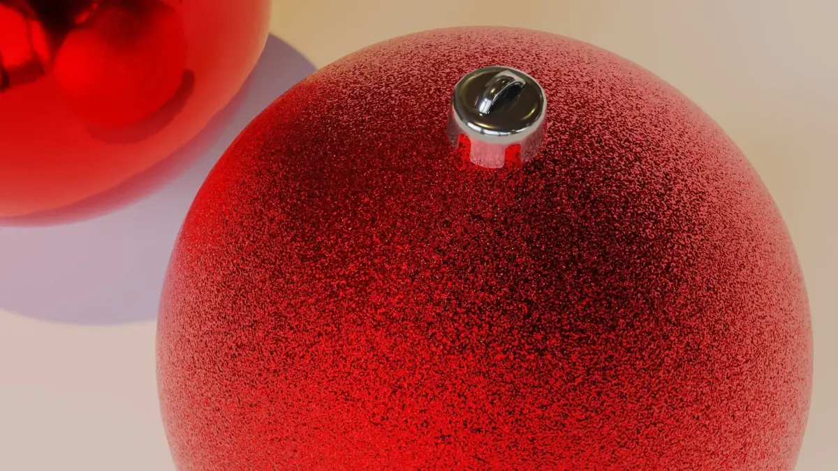 Christmas tree baubles / christmas tree balls. Three commonly found baubles in this set. Rough, shiny, and glitter types. 8 cm diameter. All baubles are coloured red with intention of the user adjusting this either in 3D software or with an image editor (adjust hue).