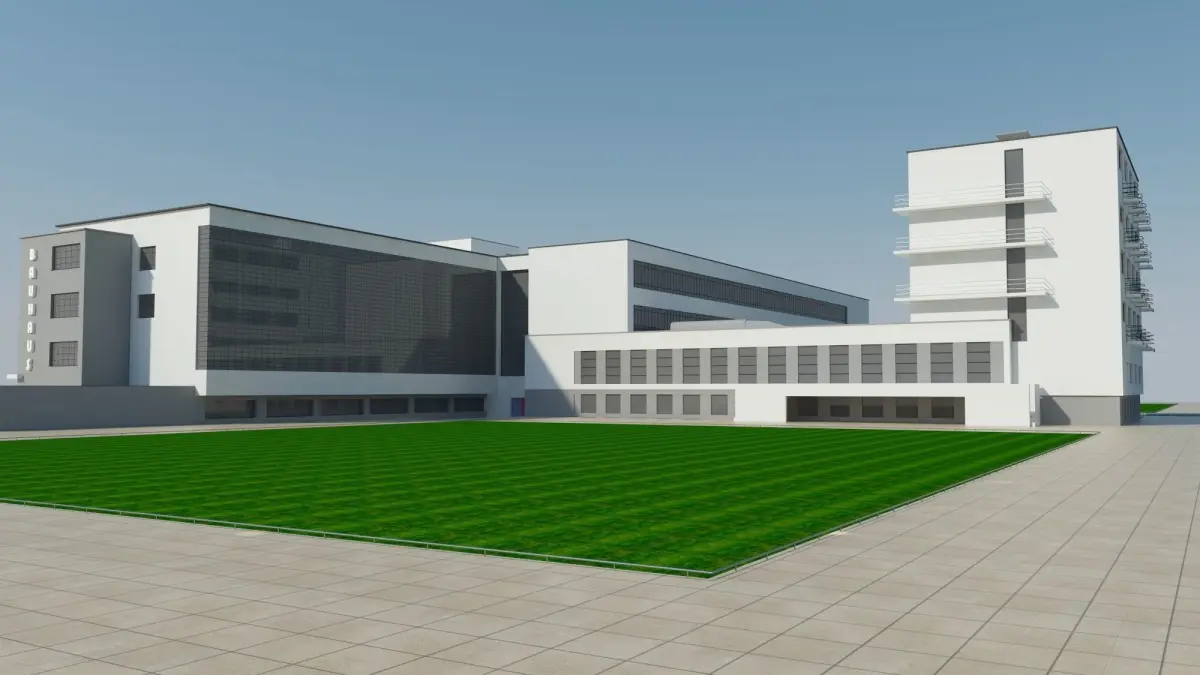 Bauhaus, Dessau, 3dModel, Walter, Gropius, Architecture, Modern, Exterior, Layout, 3d, Model, Layout, Landscape