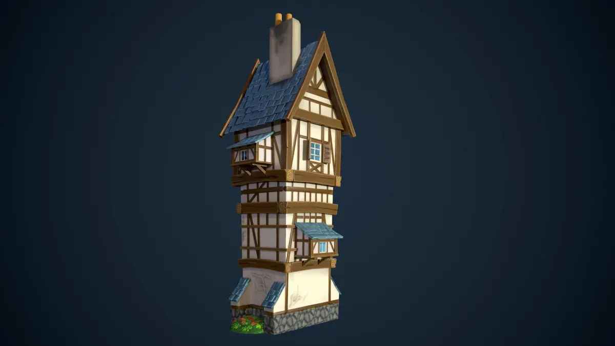 The model is made in Cinema 4d and is fully optimized for import into game engines (2272 triangles). I was inspired by Bavarian architecture and medieval towers.I have provided the texture with PBR (base color, height, metallic, normal, roughnes). Making in Substance painter.