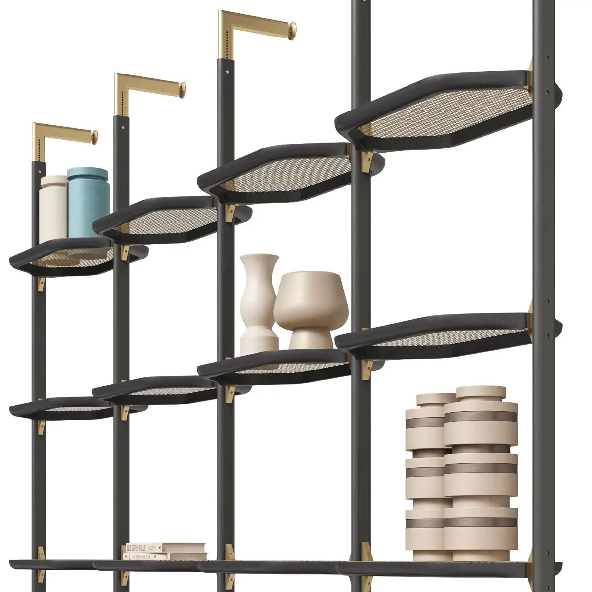 Innovation is the hallmark of the Libelle modular bookcase, the most representative element of the collection created by Pietro Russo. Libelle embodies the Baxter philosophy of choosing and combining exceptional materials and seeking a disruptive and striking design that immediately attracts attention. Libelle is a sophisticated and exclusive modular bookcase, but also a subtle room divider, a light and modular architectural element capable of expanding the space, acting as a striking partition, with a functional dimension inspired by classical canons. One of the most interesting aspects of the product is the infinite number of customizations that can be selected and added at will. This original piece of furniture surprises every time, setting new rules of style and elegance.https://www.baxter.it/en/products/libelle-accessoriesThe model is assembled for subdivision. When using import formats, please apply MeshSmoth/TurboSmoth with 2-3 iterations.