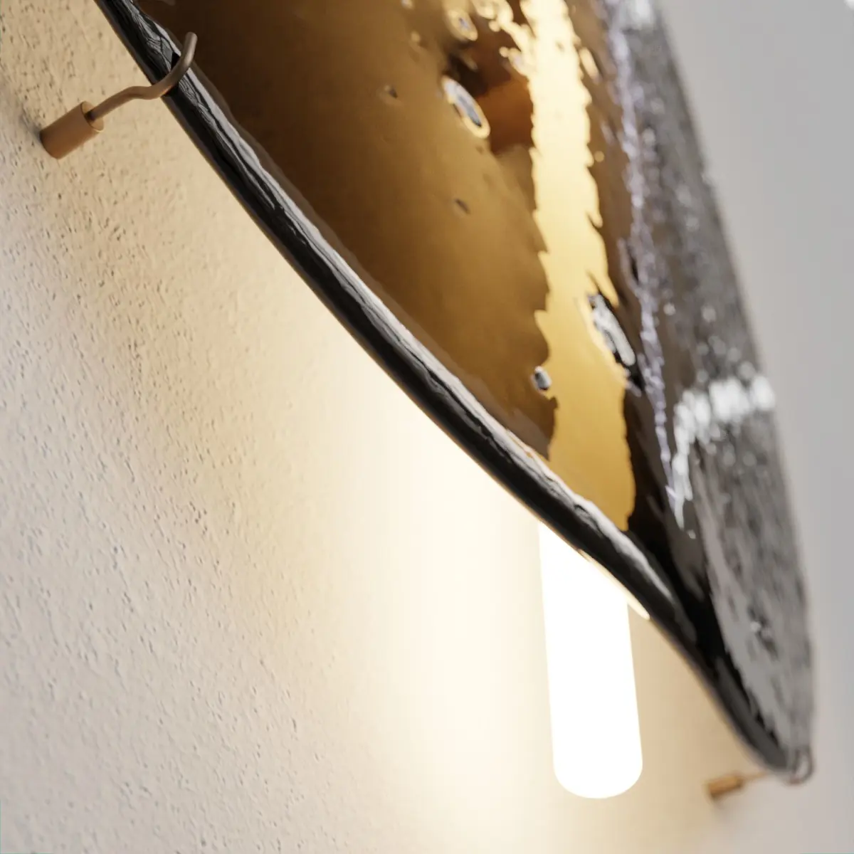 Light Details:Model: neon applique. Article with assembly required. Frame: white-varnished metal structure. Fused glass lampshade carried out with a particular technique aimed to obtain imperfect surfaces. Decoration: hook pins in burnished brass with matte varnish. Lighting: light source with white colour.