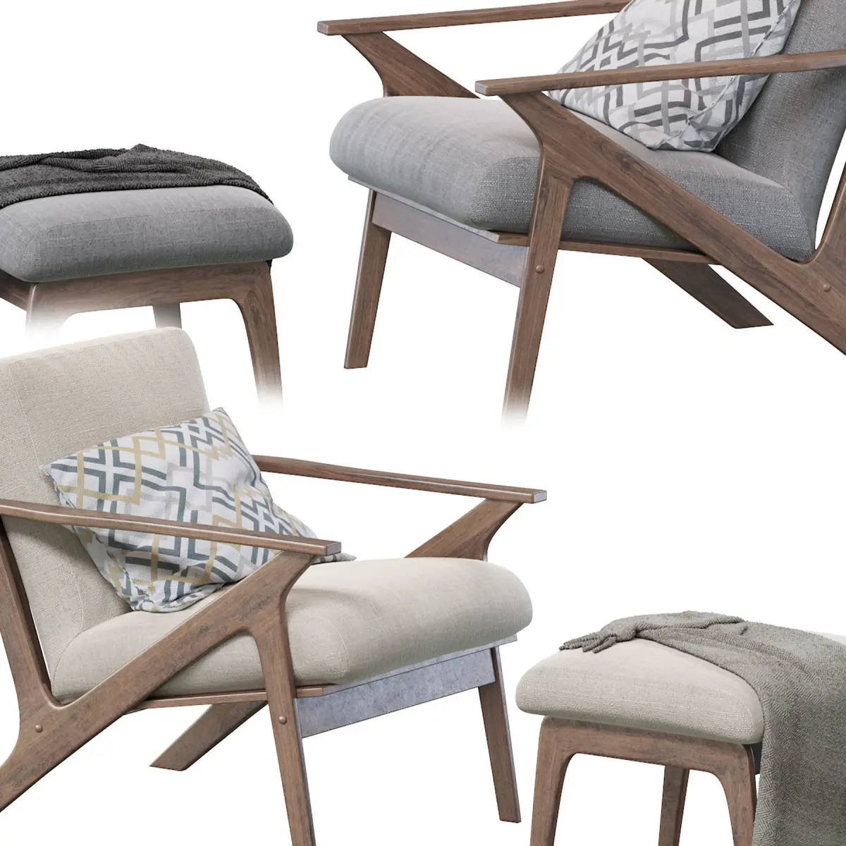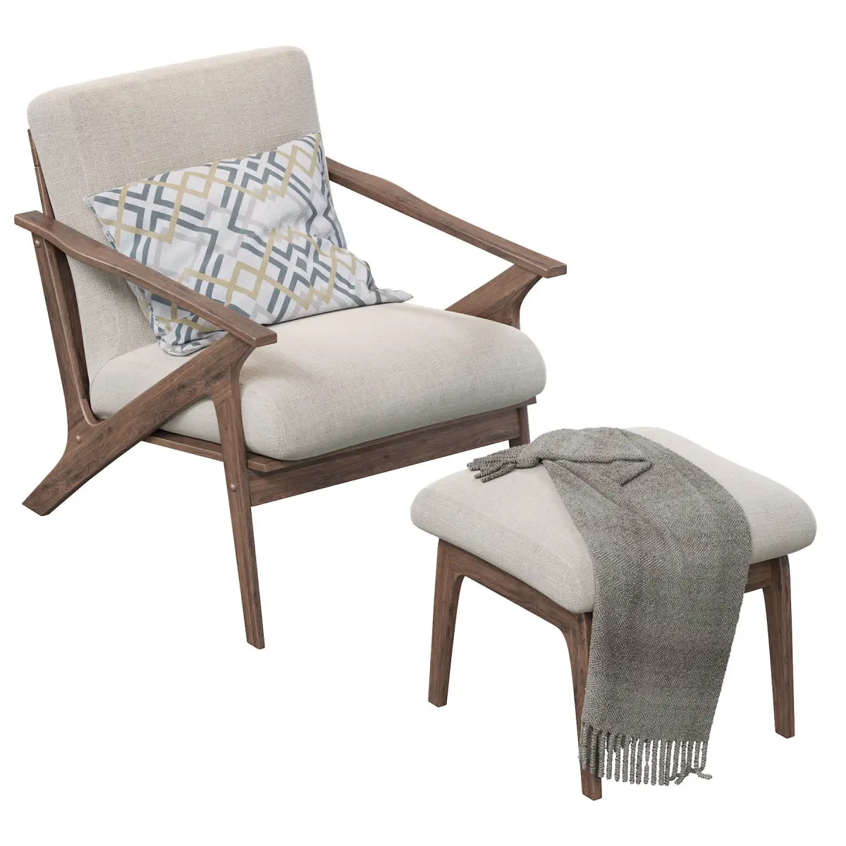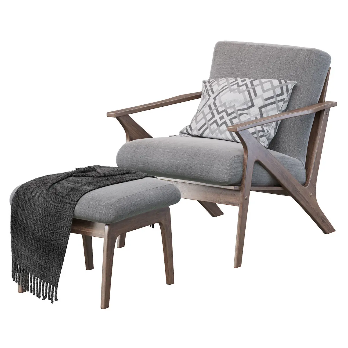 Mid-century retro modern lounge chair and ottoman set