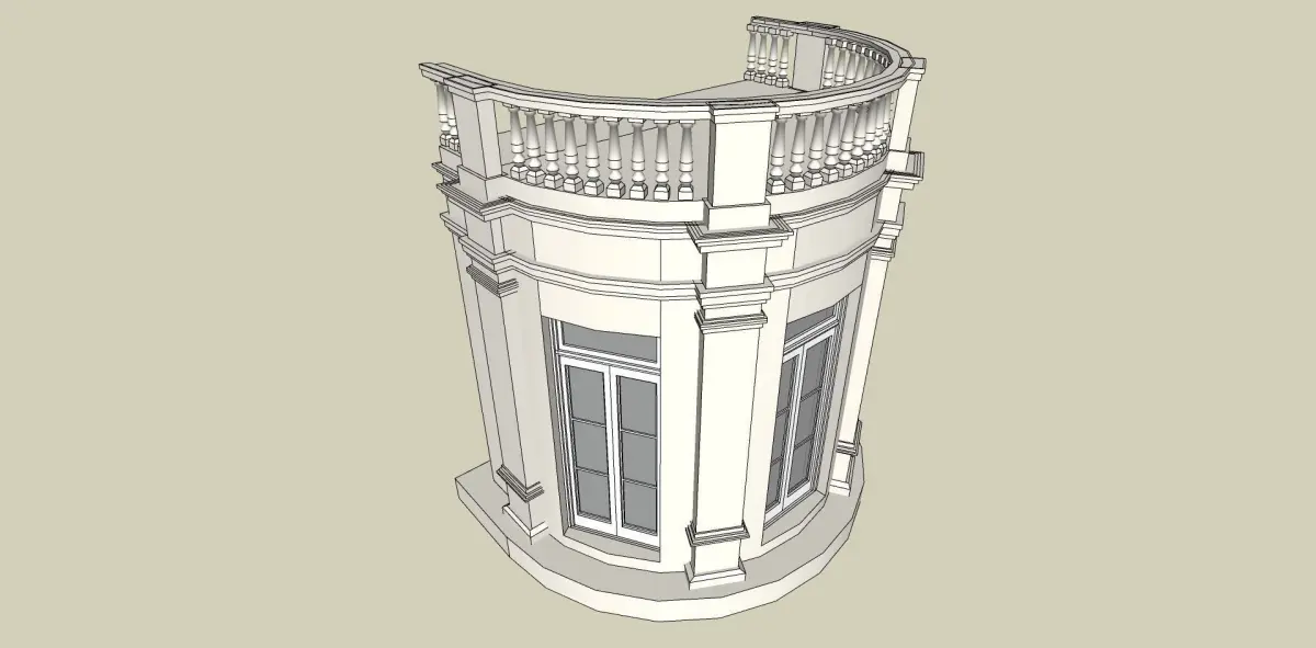 bay window curve in classical architecture 3D model